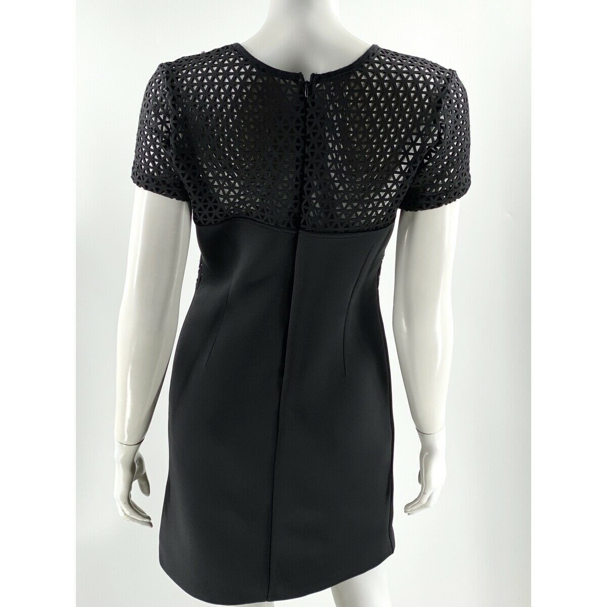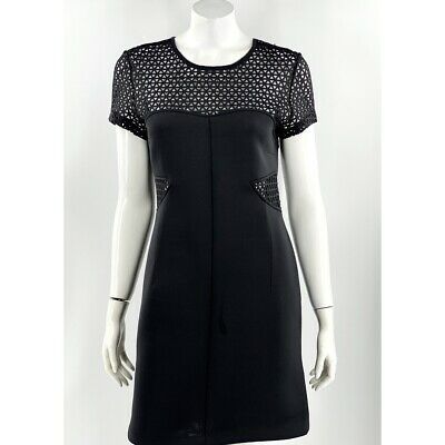Allen B Schwartz Dress Medium Black Scuba Mesh Cutout Short Sleeve Sheath Womens