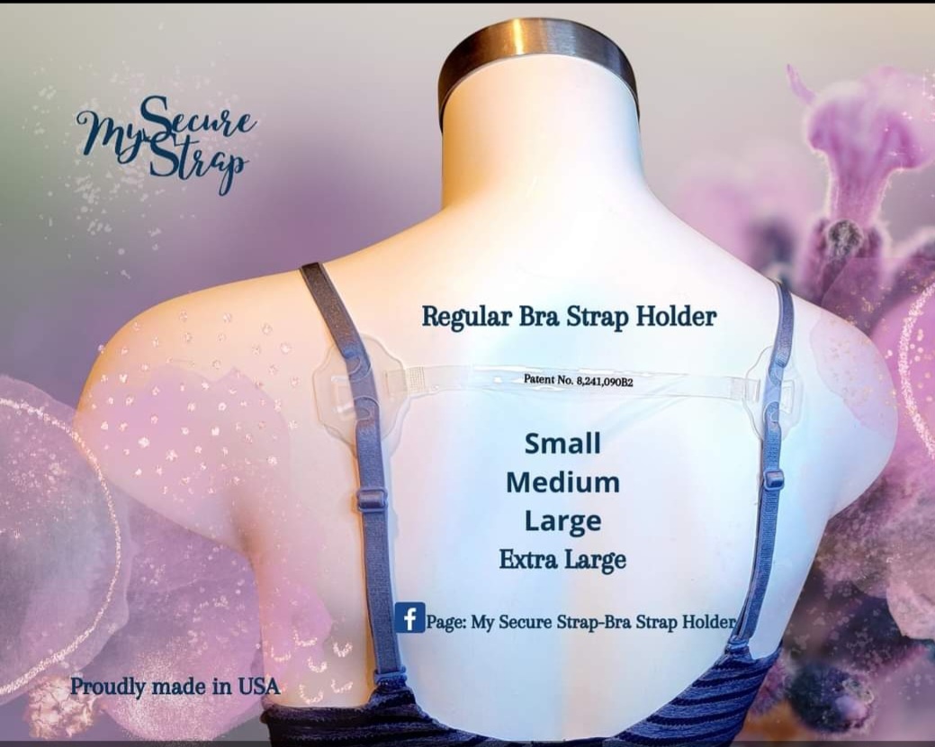 My Secure Strap is patented , brassiere accessory that helps to hold your bra straps in place and to keep your bra straps from falling off your shoulders . With comfort and ease , My Secure Strap is unlike any other product you may find on the market because of its clever, chic design. My Secure Strap is not only uniquely constructed for comfort , but it is also a highly effective product , 100 % U.S.A. made. Holding your bra strap in place with three light-weight, functional prongs and preventing movement while attached to your bra straps , My Secure Strap keeps your bra in place! Whether your working in the office, gardening in the yard or running errands around town , you will no longer be troubled with pulling your bra straps off your arm and back over your shoulder. Never fight to keep your bra straps on your shoulders again !