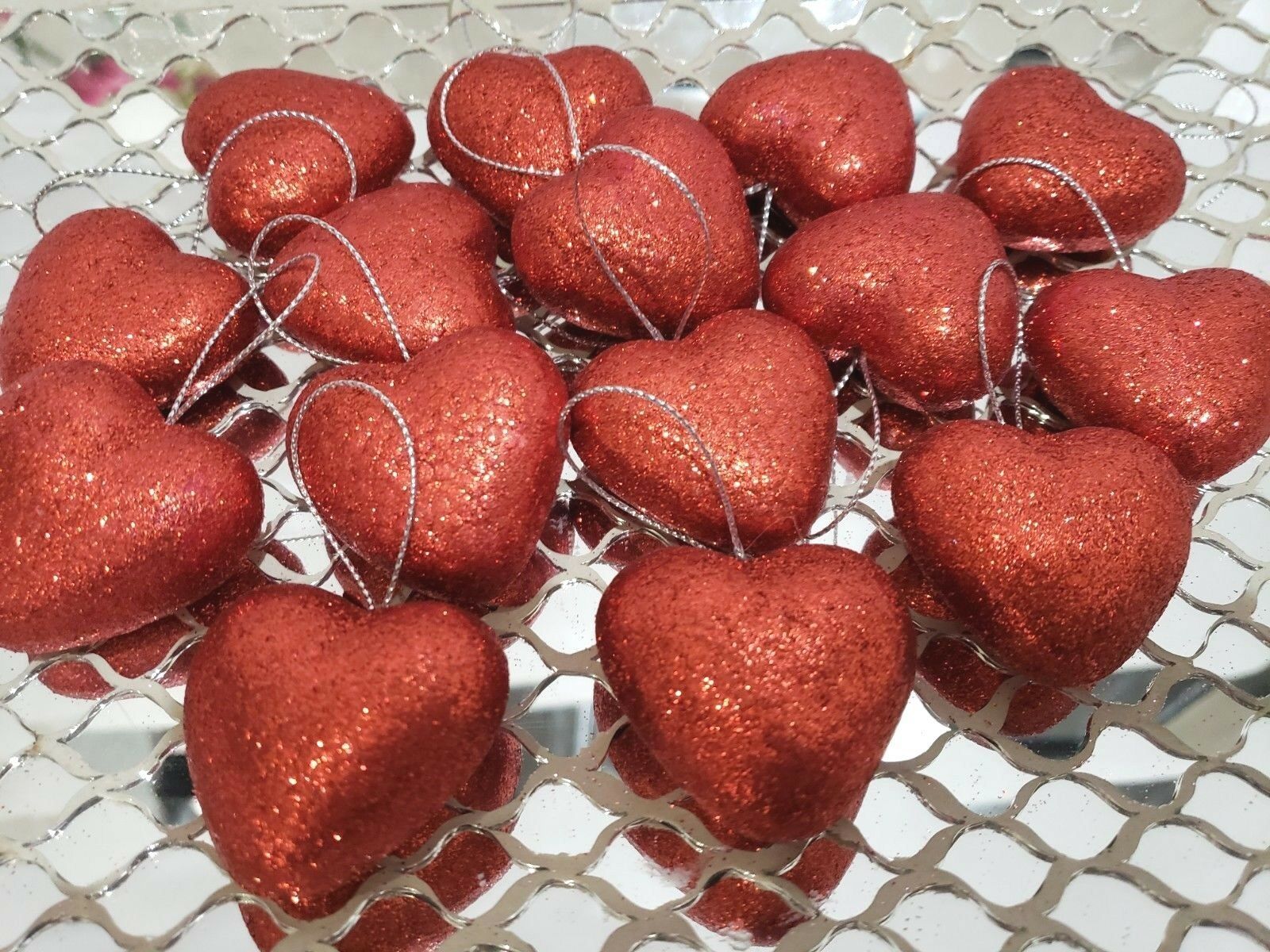 Valentines Day Red Glitter Hearts 1.5" Ornaments Decorations Decor S/15