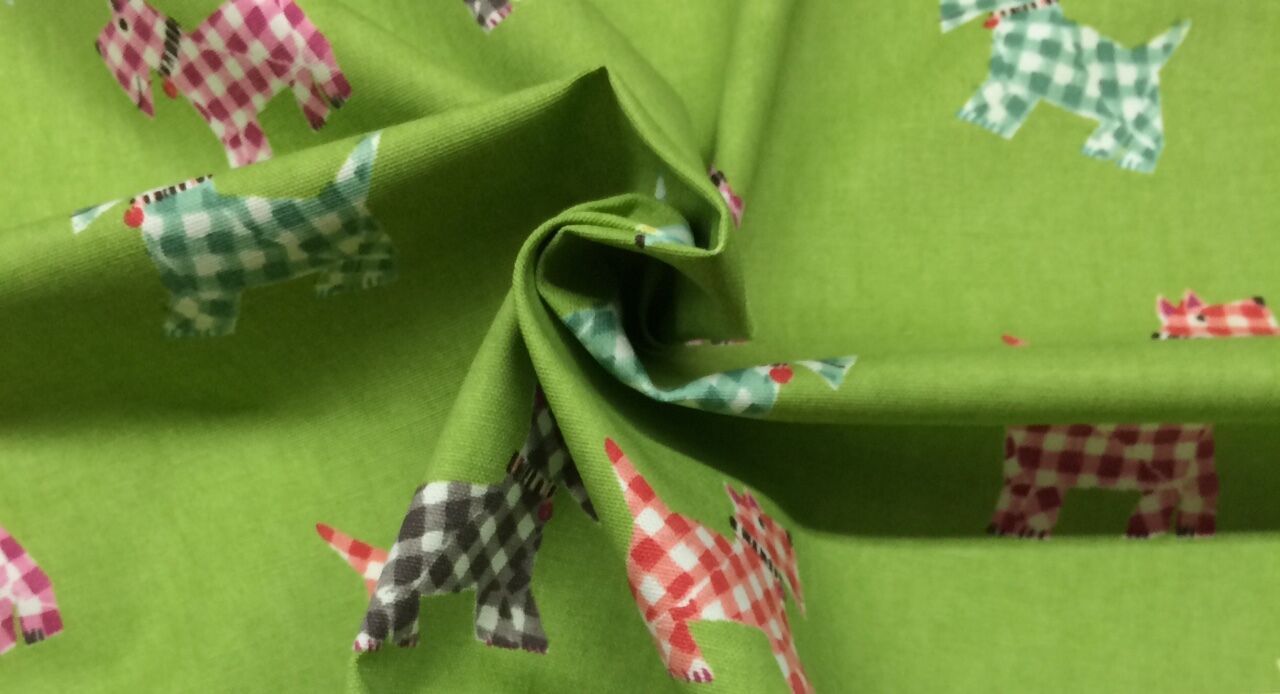 P KAUFMANN HOTTIE SCOTTIE SPROUT LIME GREEN DOGS PUPPY FABRIC BY THE YARD 54"W