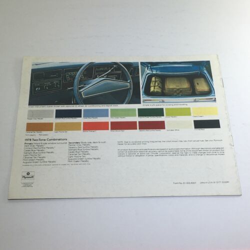 1978 Plymouth Volare Coupe Sedan Dealership Car Auto Brochure Catalog