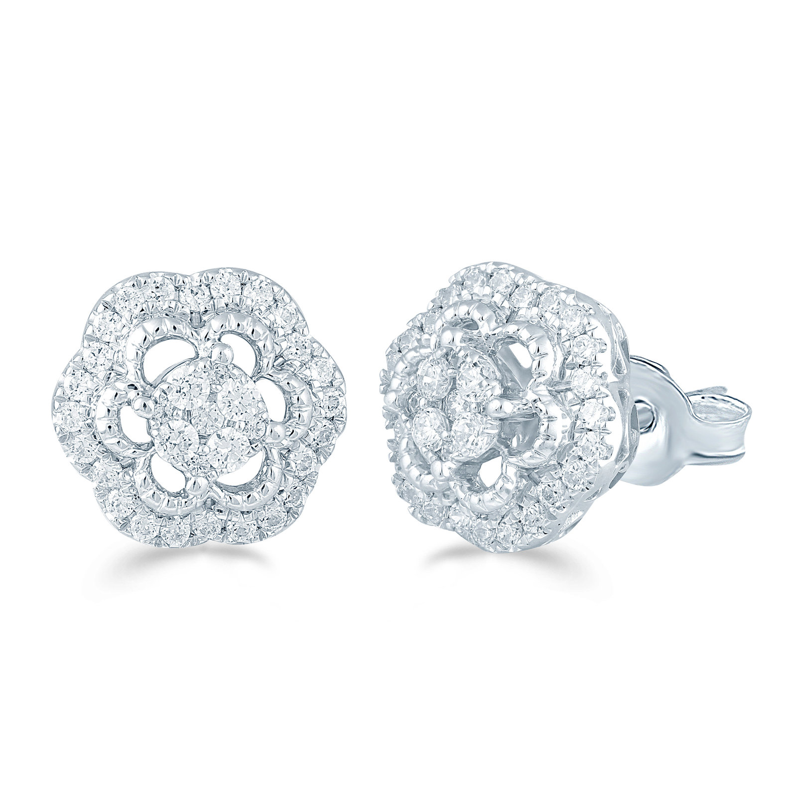1/2ct tw Diamond Floral round Cluster Fashion Stud Earring in Sterling Silver