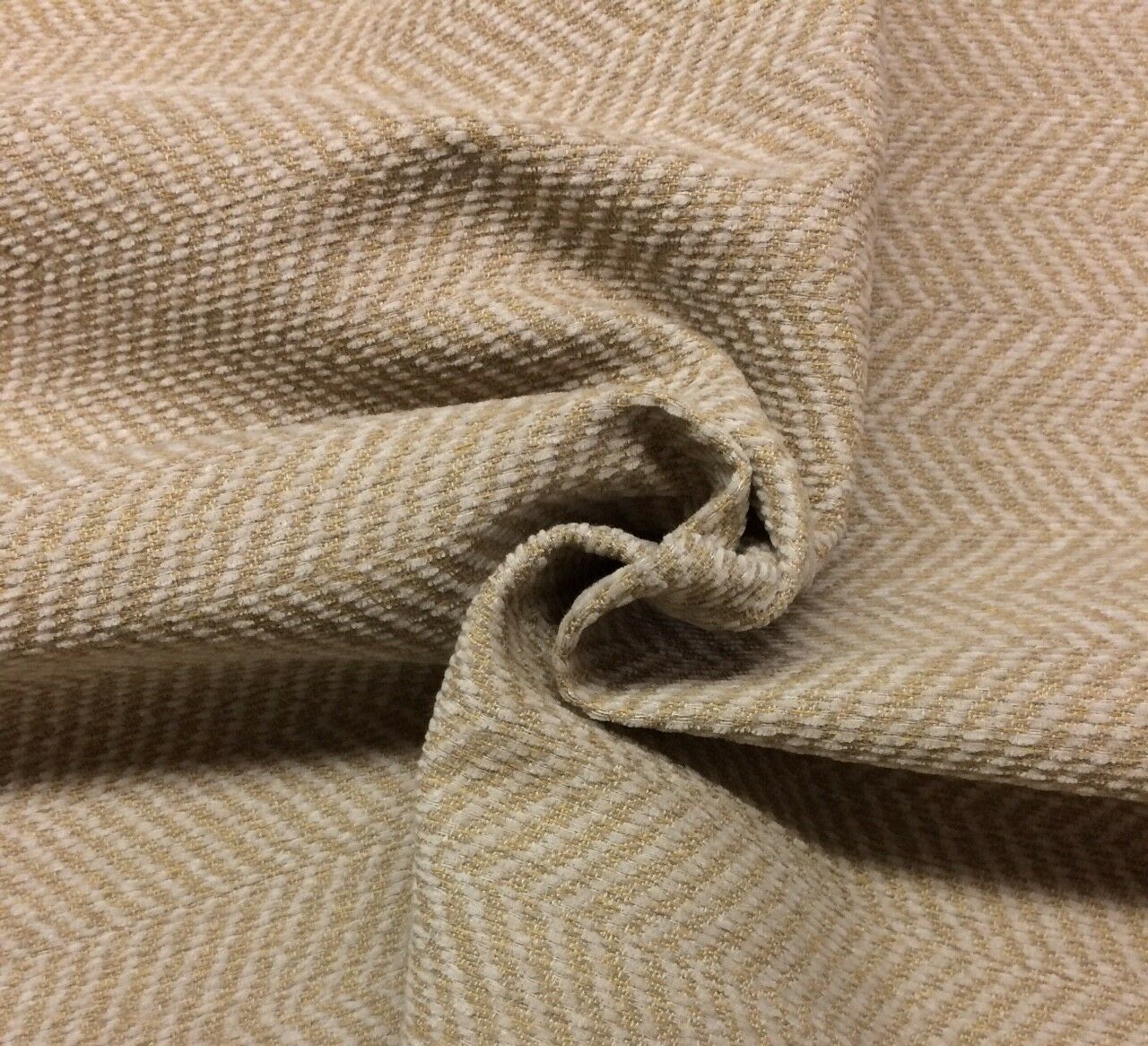 TONES OF WREN CAMEL IN A PLUSH CHEVRON WEAVE OF THICK, SUPPLE, SOFT BALLARD DESIGNS PERFORMANCE FABRICS BY SUNBRELLA