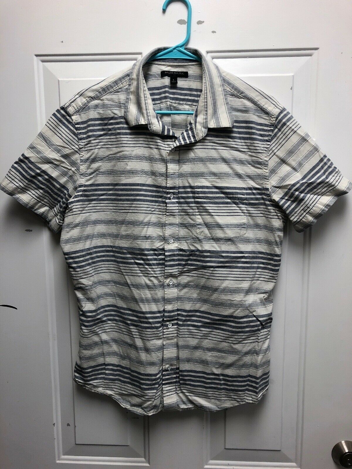 Mens Banana Republic Button-up Shirt, Blue/White Stripe, L