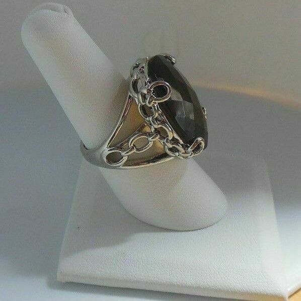 NR Stamped Silver-tone Rootbeer Colored Stone Cocktail Ring Size 7
