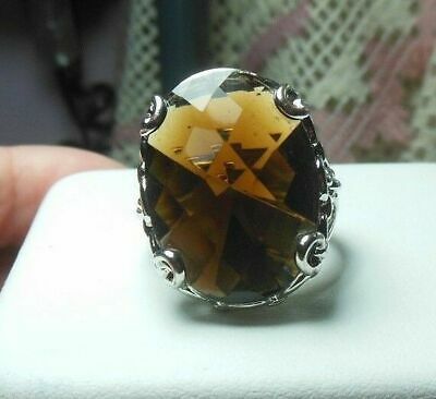 NR Stamped Silver-tone Amber Colored Stone Cocktail Ring