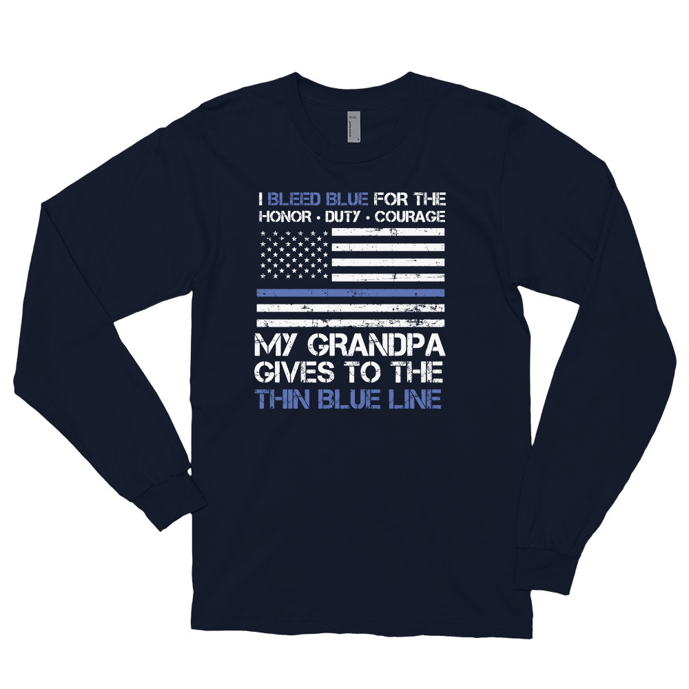 Thin Blue Line Family Shirt American Flag Proud Grandpa Long sleeve t-shirt