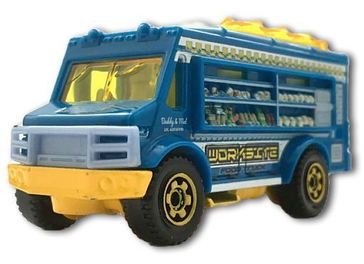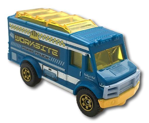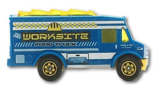 Description: Light Blue w/White interior; Yellow windows; White, Yellow Black graphics with ‘WORKSITE FOOD TRUCK’ on sides w/various food tampos; White ‘Buddy Mel’ on doors; Yellow Thailand base w/YlwRG’s. 042420-042420P-D43