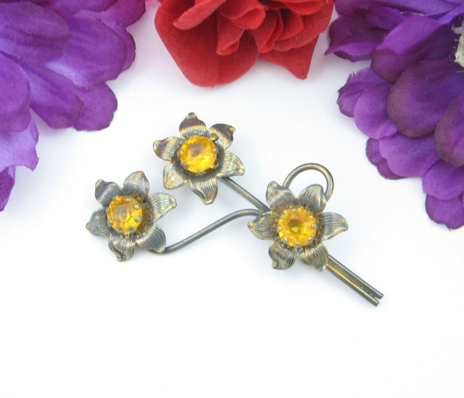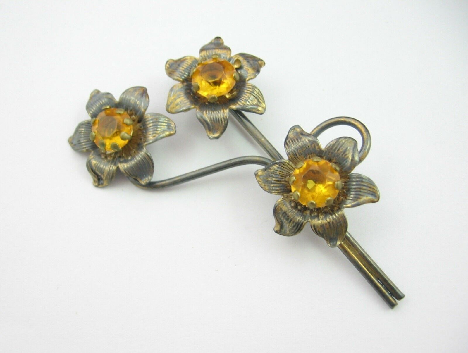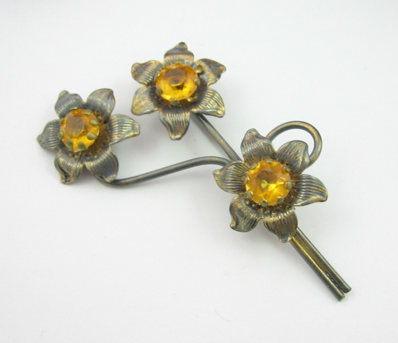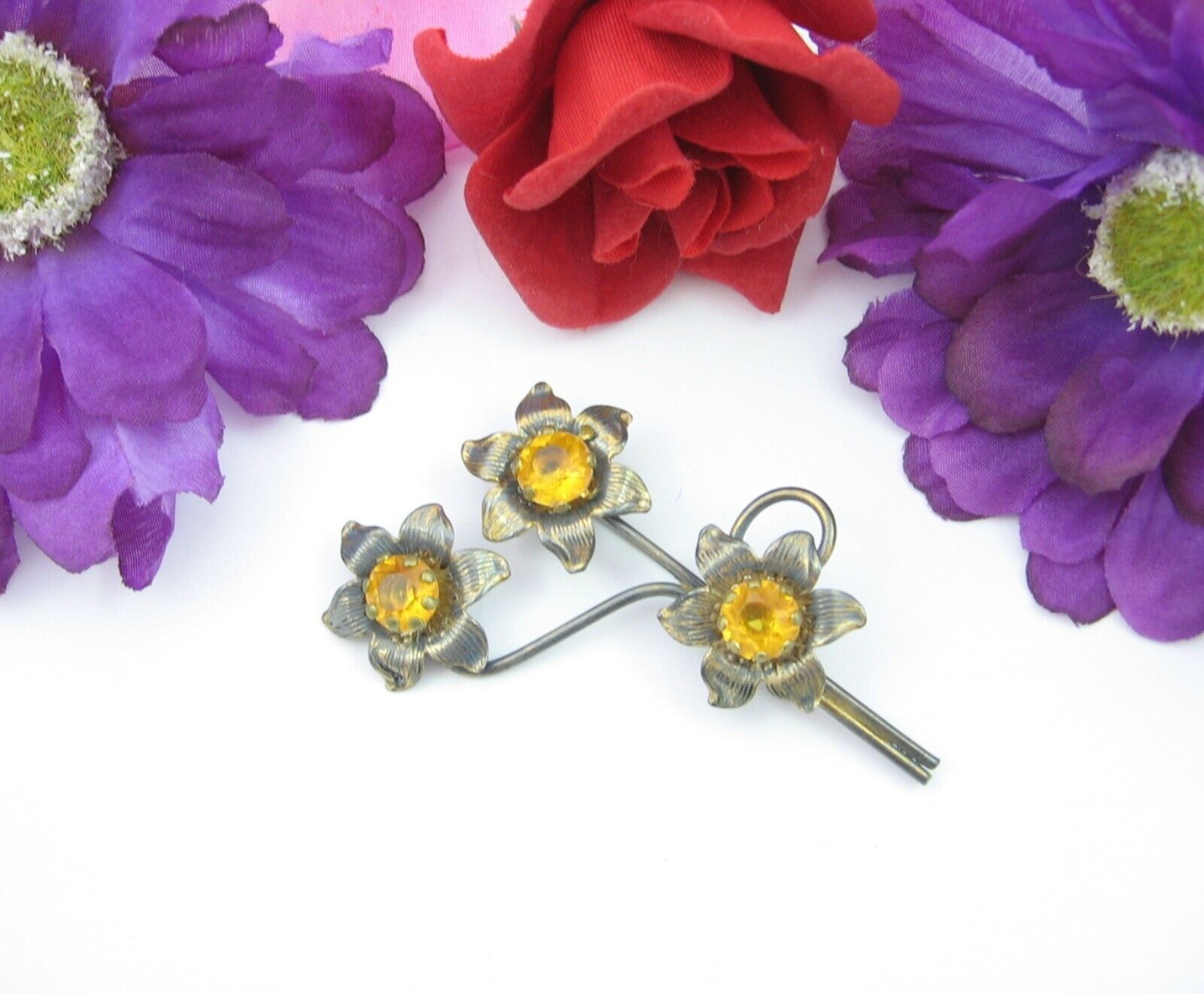 With THREE BLOOMS this is a vintage YELLOW GEM FLOWER PIN!