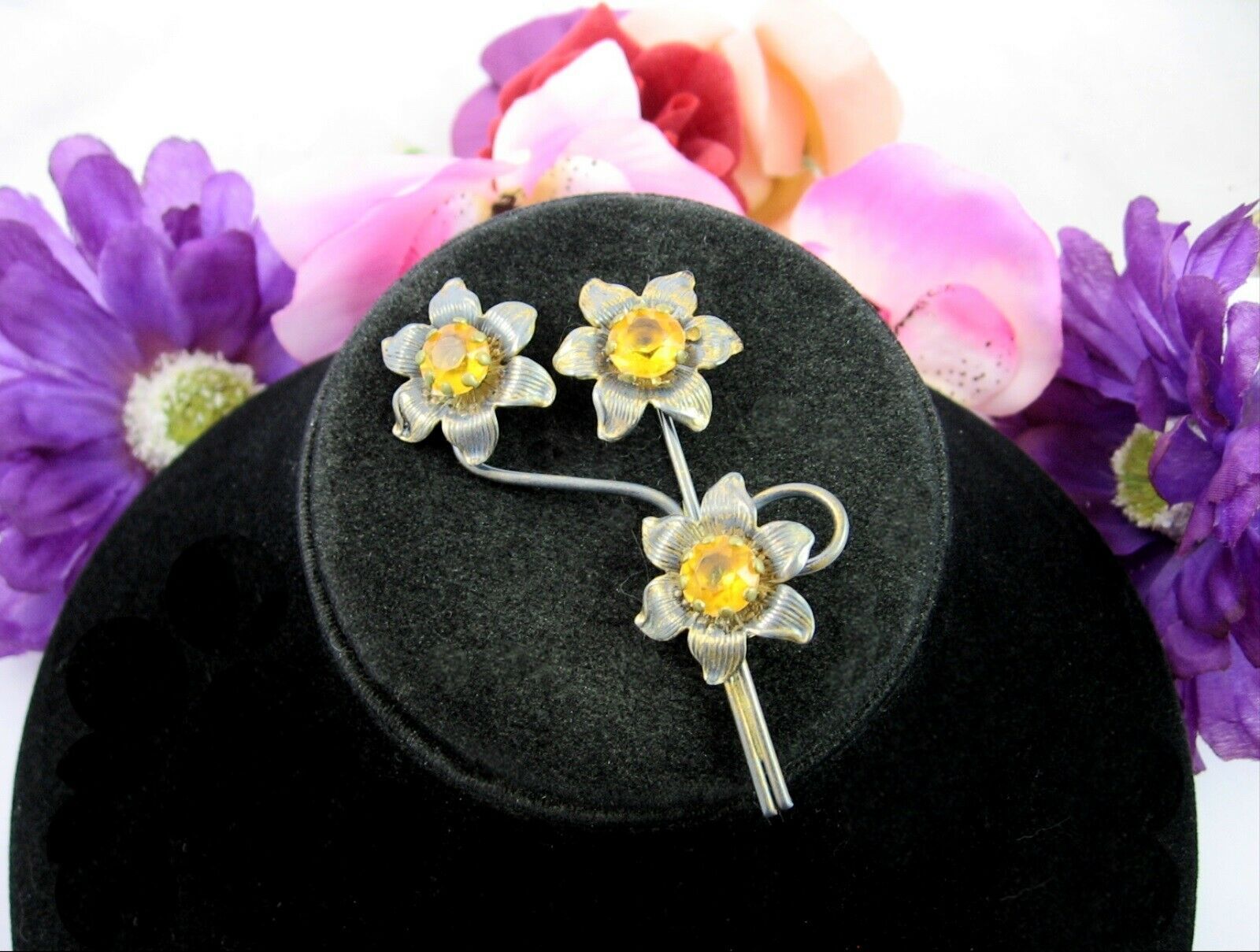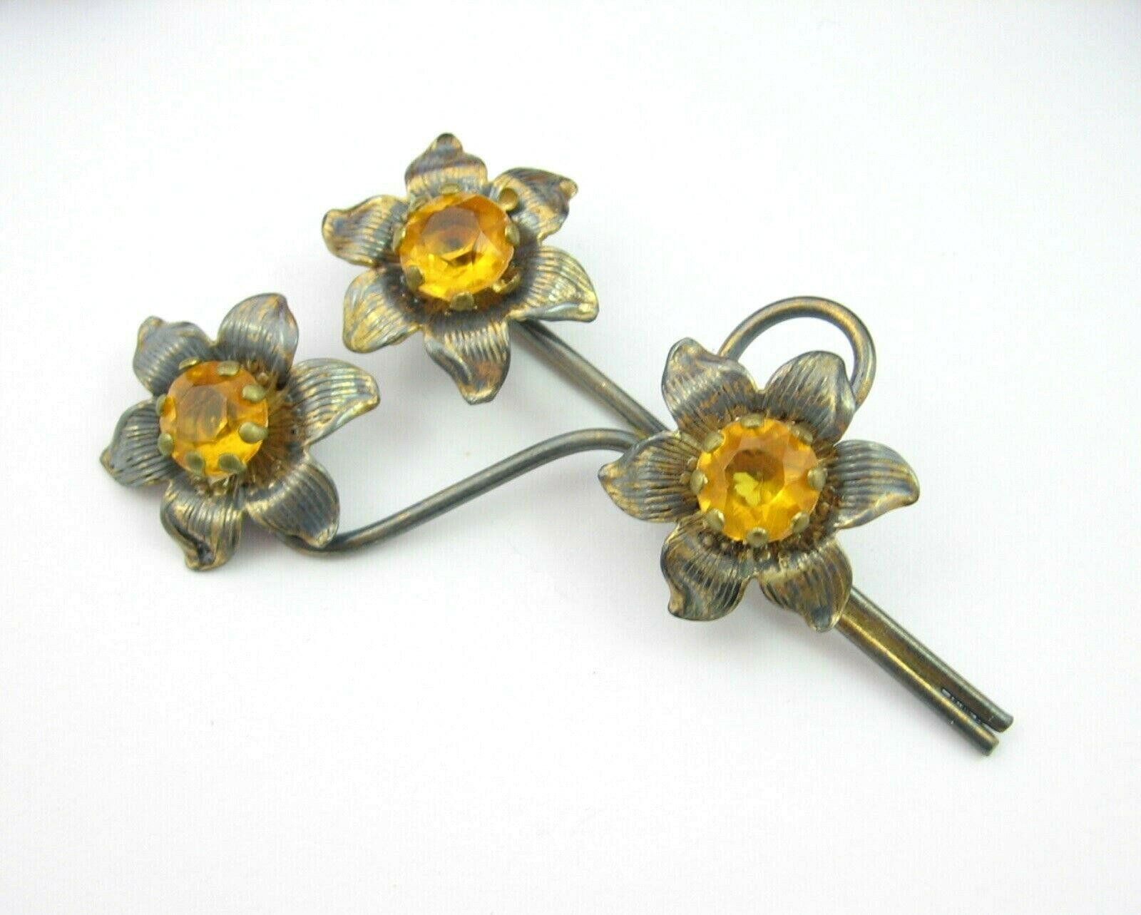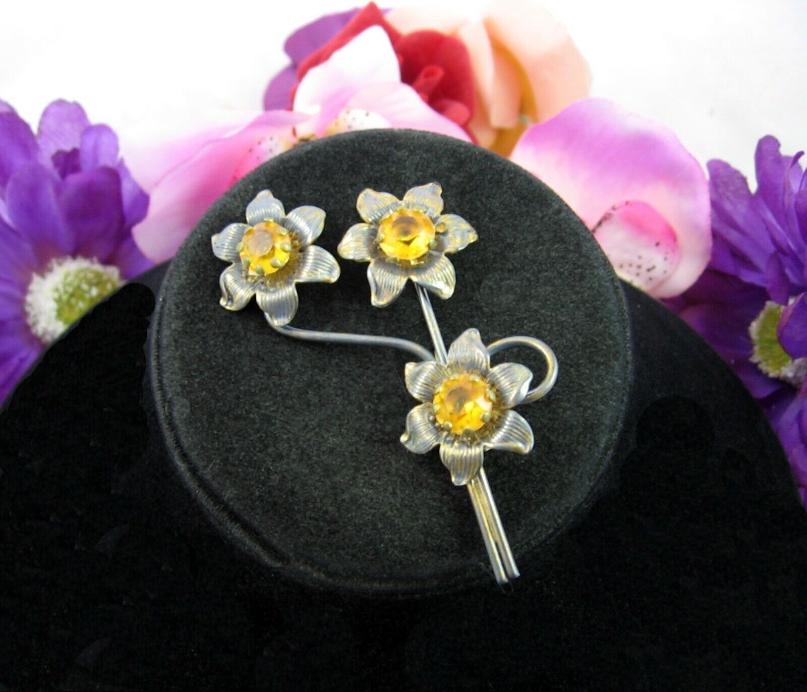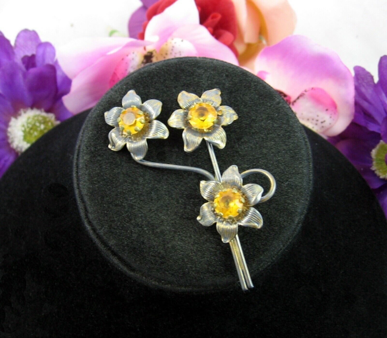 With THREE BLOOMS this is a vintage YELLOW GEM FLOWER PIN!