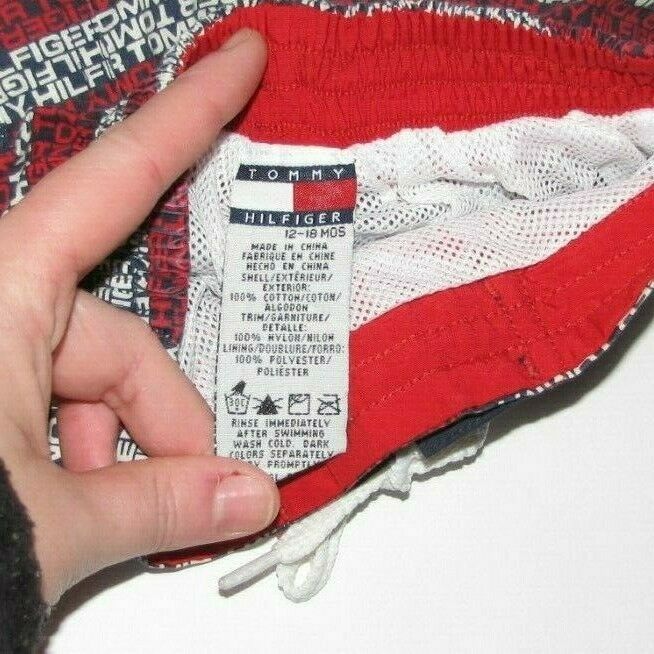 Retro Tommy Hilfiger Baby Toddler Boy Swim Trunks Red White Blue Spellout 12-18
