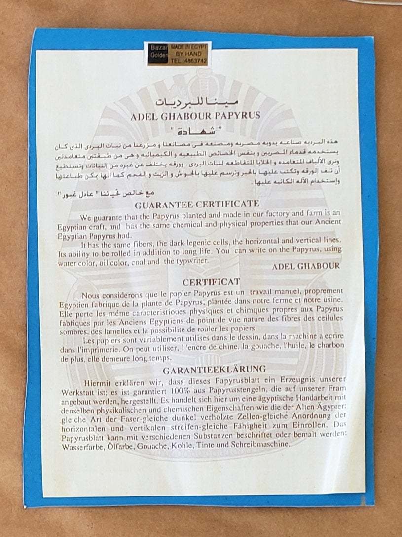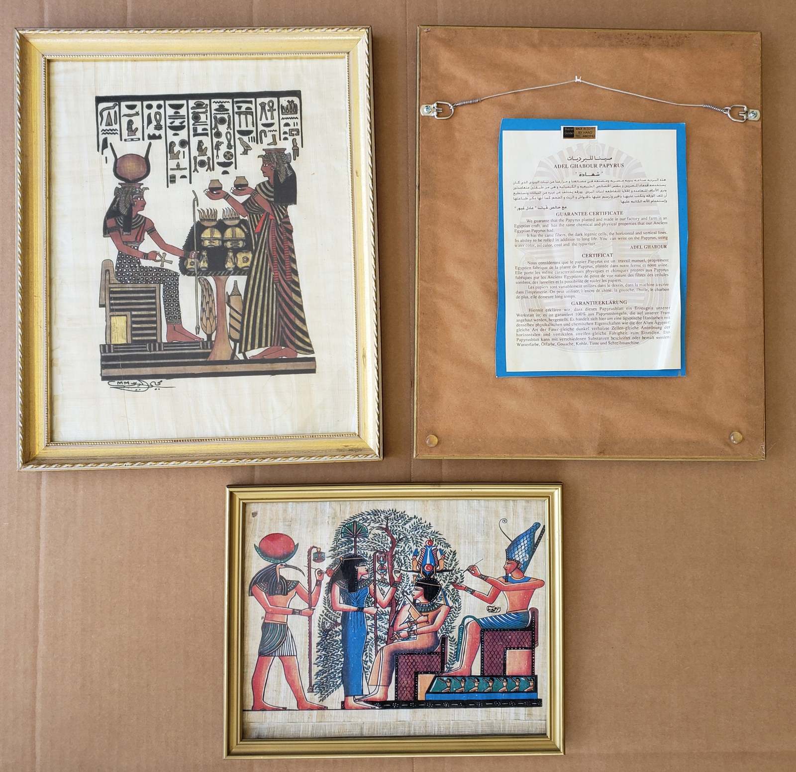3 Framed Handmade Egyptian Hieroglyphics Painted Art on Papyrus Paper w/ COA Ank