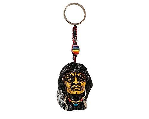 Handcrafted durepox keychain of native american. Artistic and unique, each one of these keychains is individually hand-painted with skill and patience. Dimensions: approx. 3" x 1.7" x 0.7" (Figurine) | 3" length (String/Keyring). DISCLAIMER: Macramรฉ piece and bead will vary in color. Product will be very similar but not identical to what is shown in the image.