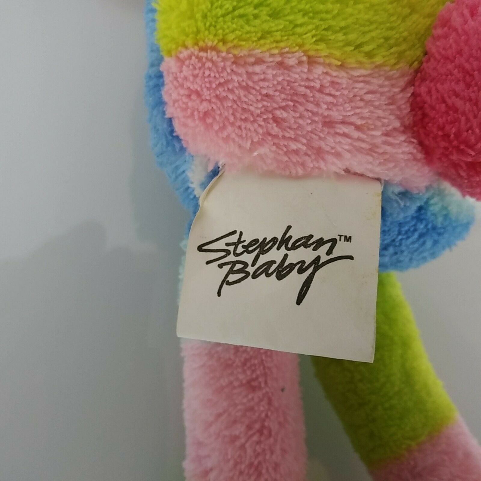 Stephan Baby Stuffed Plush Bunny Rabbit Puppy Dog Blue Pink Stripe Rattle Toy