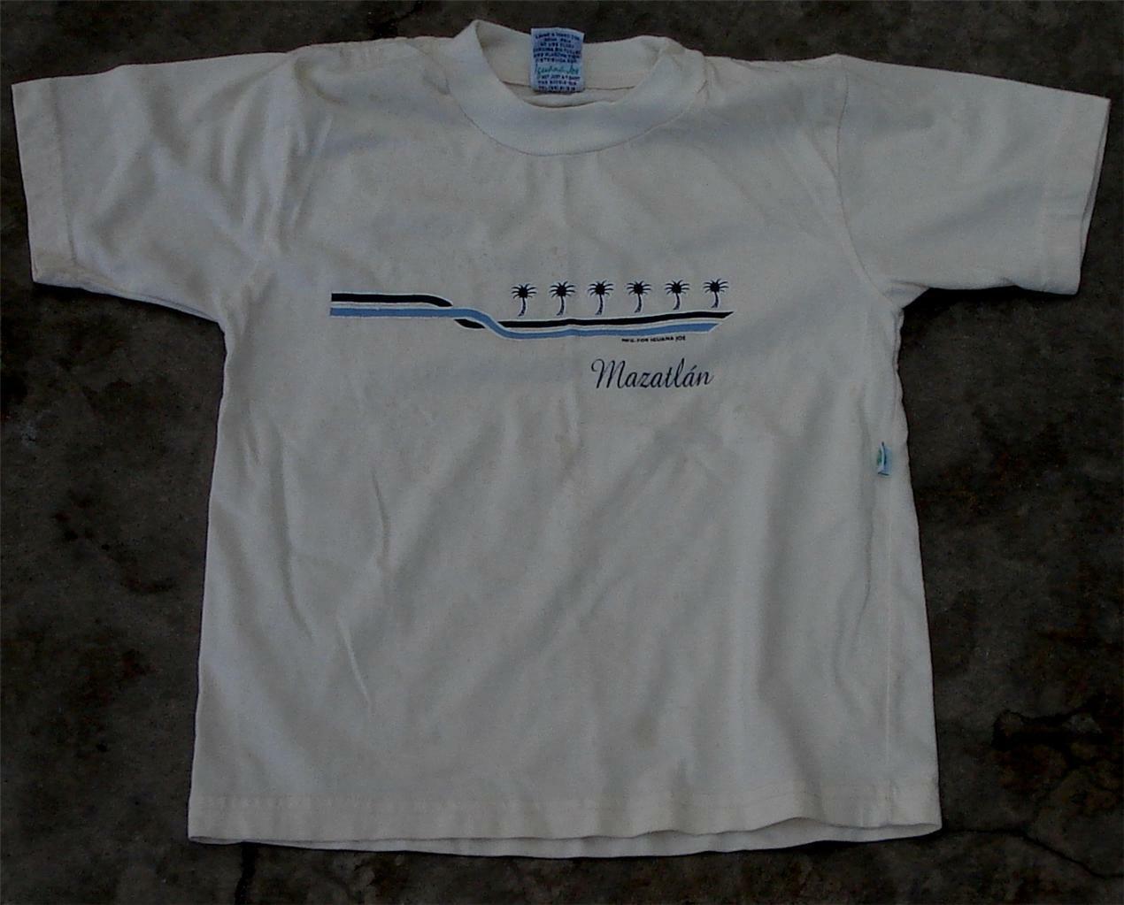 You are bidding on this nice gently used Iguana Joe 50% Cotton/50% Polyester Graphic T-Shirt, size medium. It is in very good condition, with no holes or tears, but there are some very light stains on it, that are barely visible, and is made of 50% Cotton, 50% Polyester. It is a nice ivory color, with a nice Mazatlan palm tree dual blue color design on it. It is 12.5" across the shoulders, 20" from the back of the neck to the bottom hem, 15" across the chest from armpit to armpit, 15.25" across the bottom hem. This is a very nice gently used boys Iguana Joe T-Shirt. PLEASE NOTE THAT THIS ITEM COMES FROM A SMOKE FREE HOUSEHOLD WITH PETS.