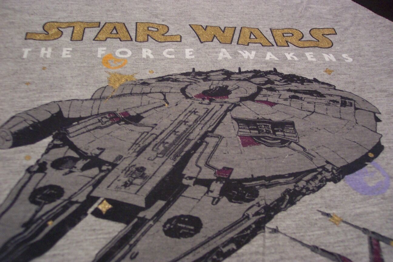 WOMEN'S TEEN STAR WARS FORCE AWAKENS MILLENNIUM FALCON POP ART T-shirt MEDIUM