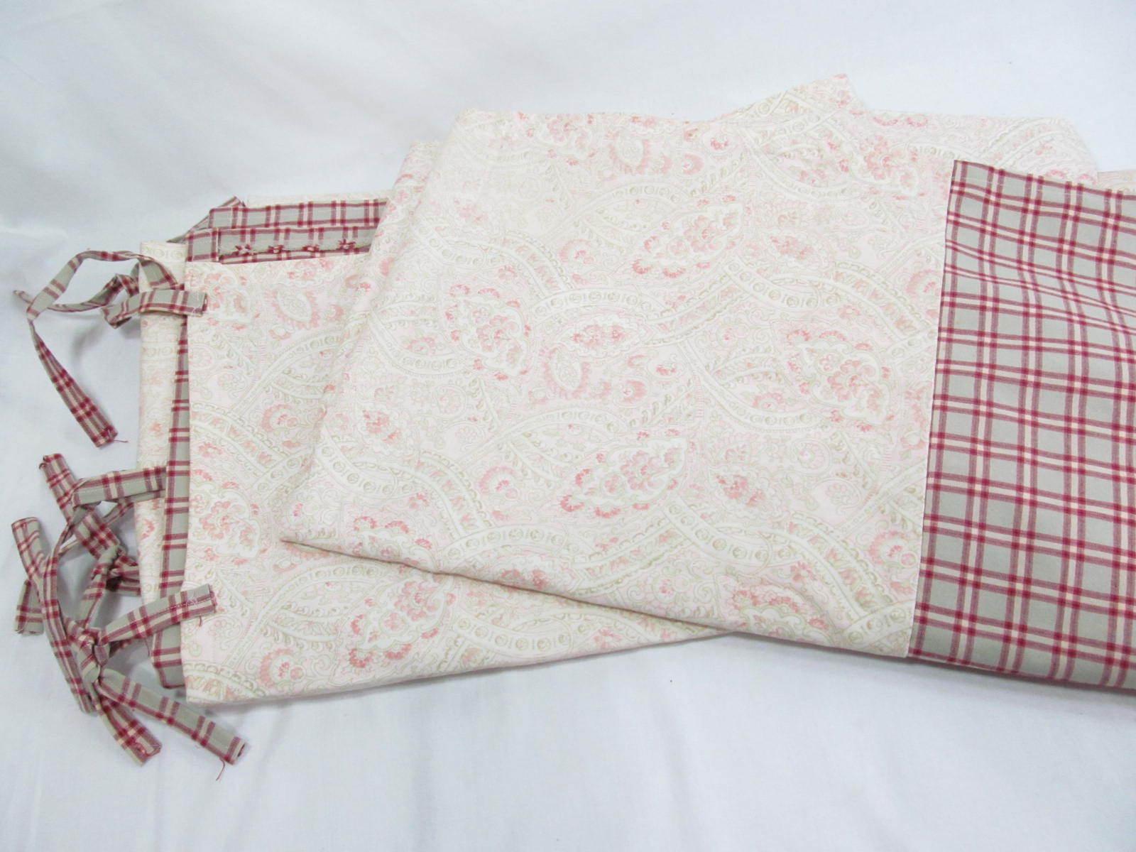 RARE! Measures: each 54" W (108" wide total) x 84" L (75" paisley+6.5" plaid bottom+2.5" tie hang).