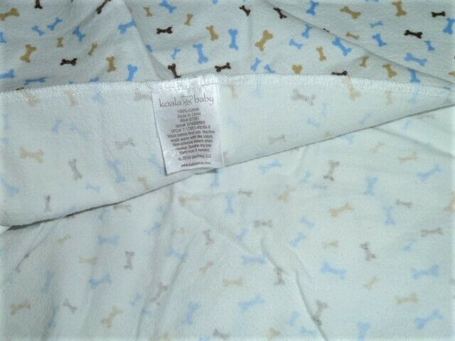 KOALA BABY BONES blanket white tan brown blue cotton flannel receiving Used. No rips, holes or major/significant stains.