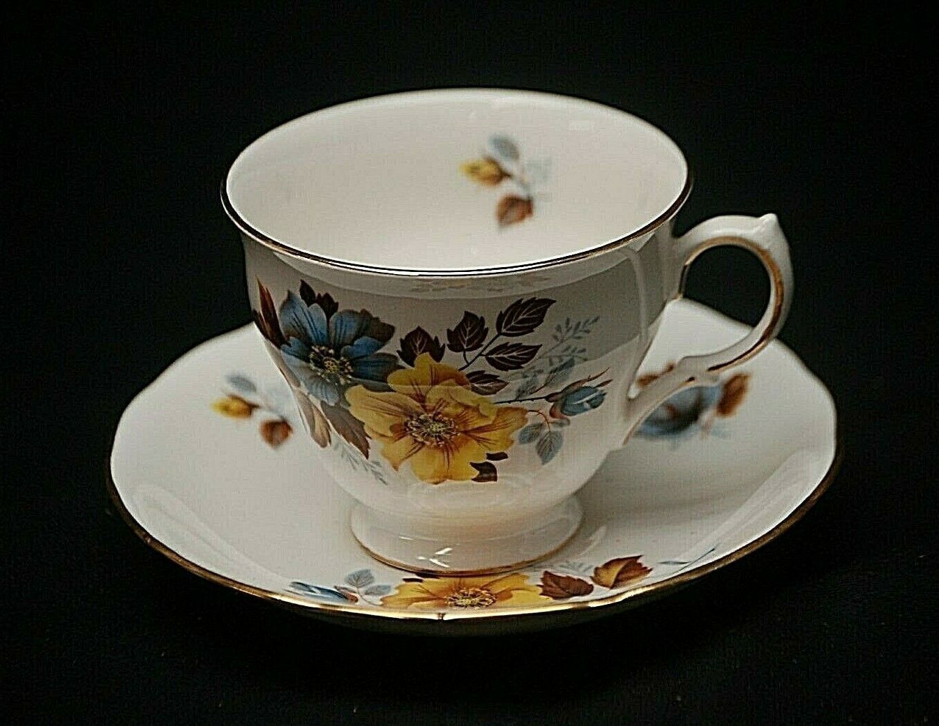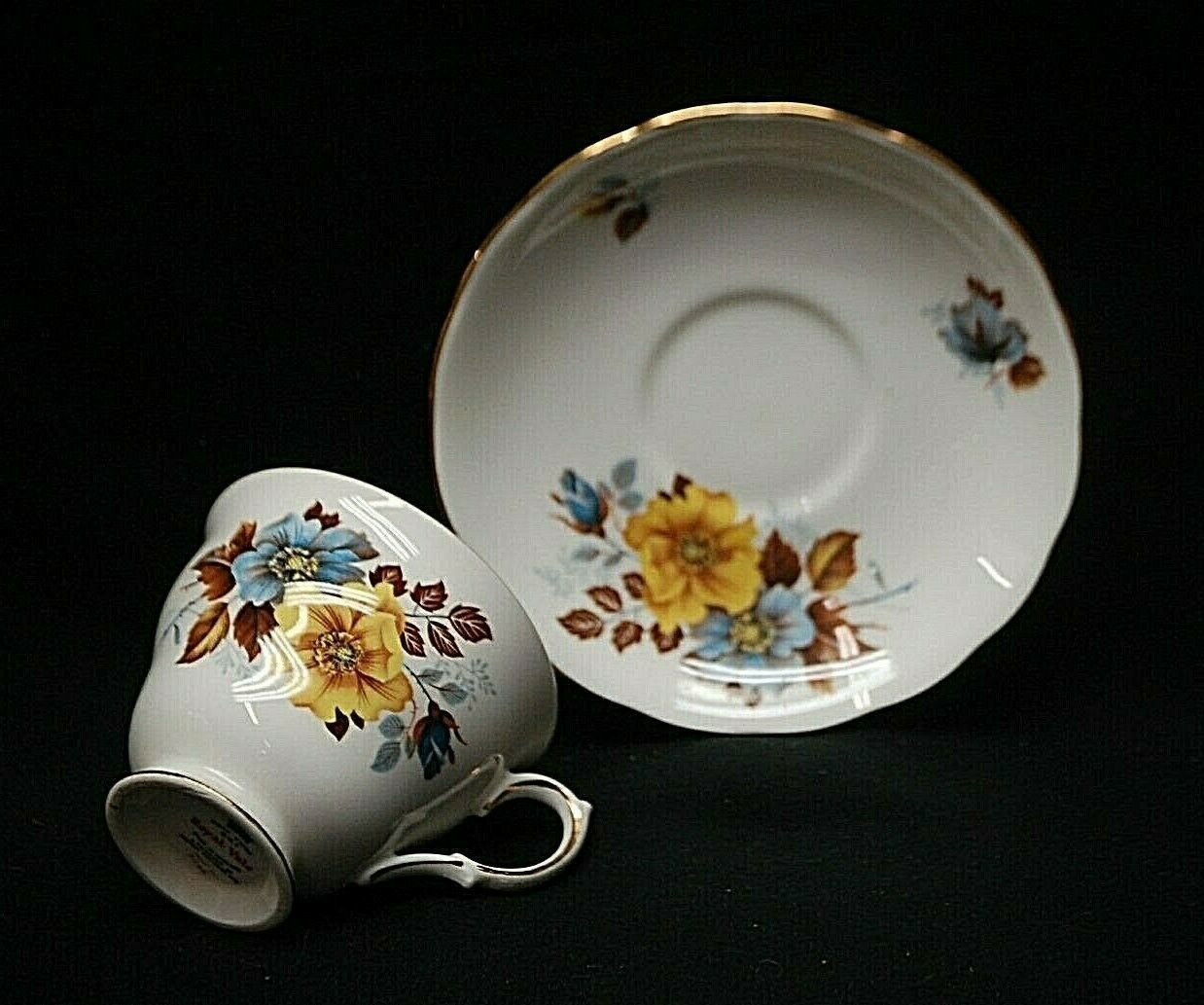 Royal Vale 8328 Bone China Tea Cup & Saucer Set Yellow Floral Scalloped England