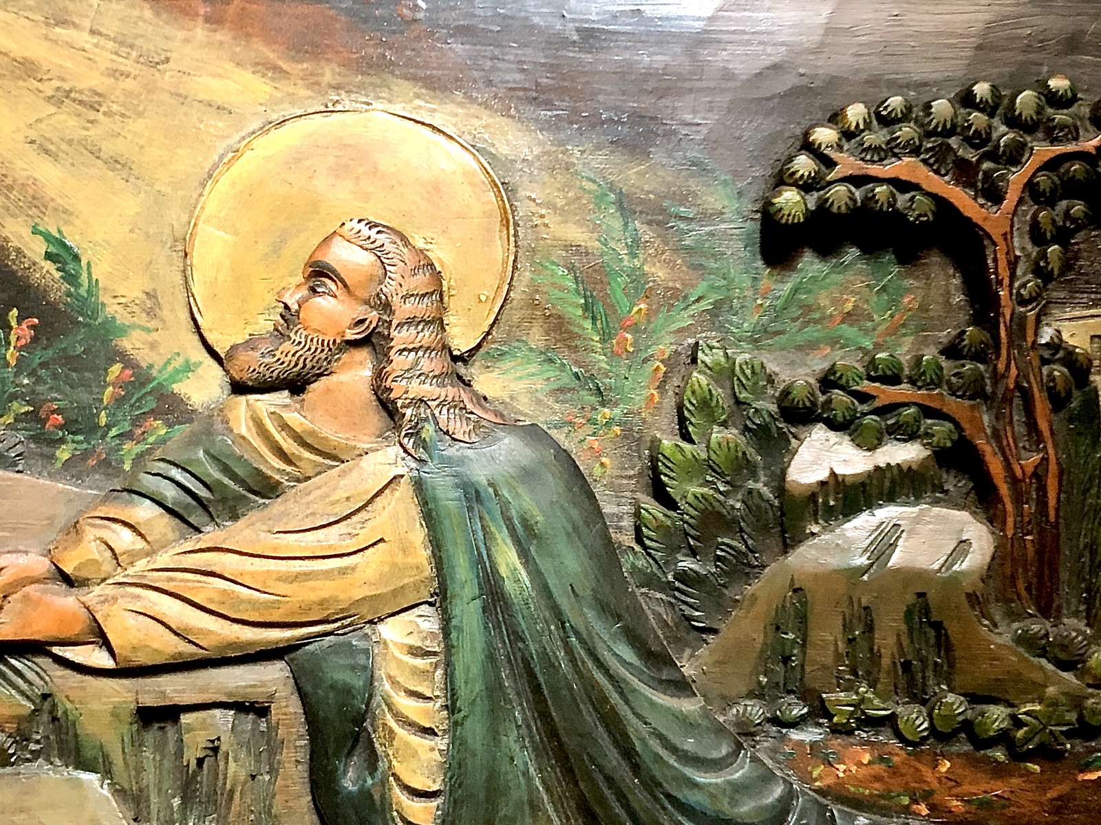 19th/20th Century Jesus in the Garden of Gethsemane Folk Art Carved Wood Plaque