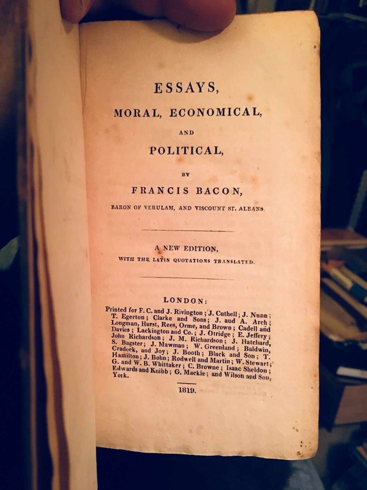 Francis Bacon — Essays Moral, Economical, and Political - London 1819
