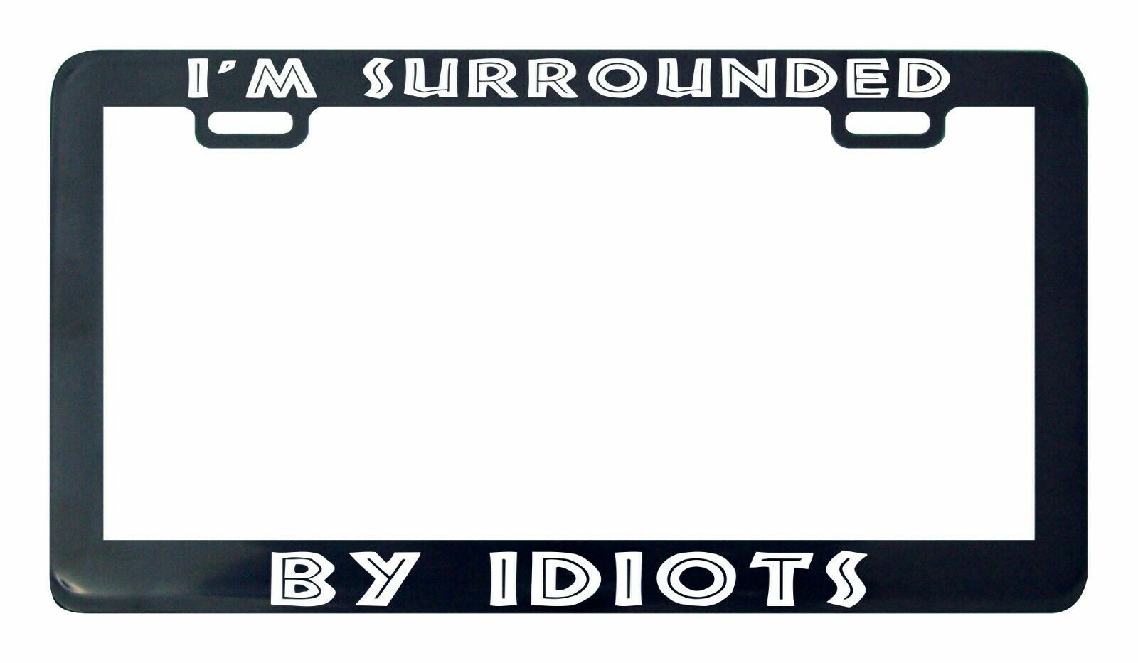 Custom and personalized license plate frame send note with top and bottom lettering.
