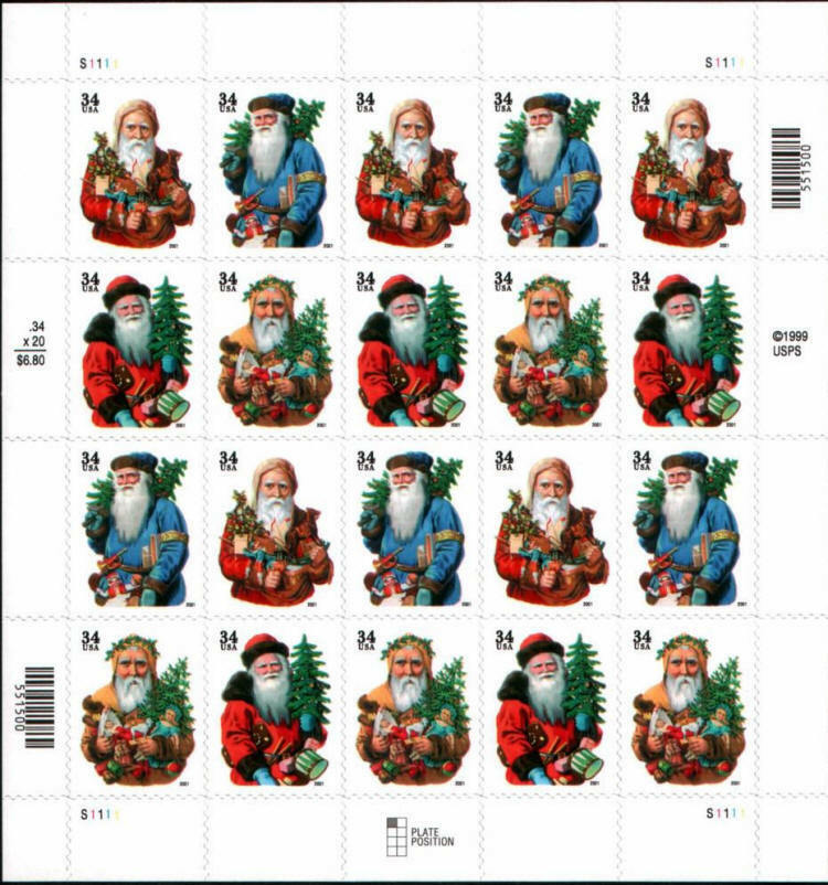 2001 34c Santa Claus, Christmas, Sheet of 20 and 50 similar items