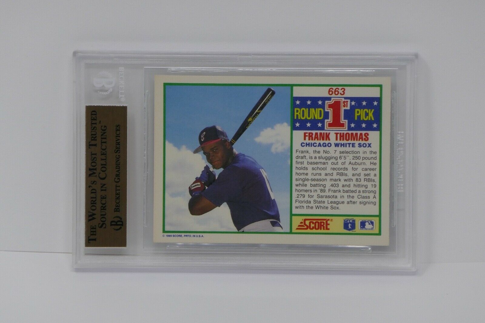 Up for sale is a 1990 Score #663 Frank Thomas Rookie Card. This has been graded by Beckett.