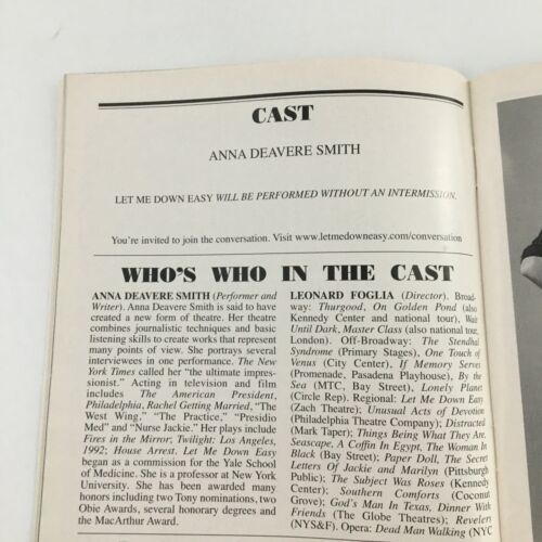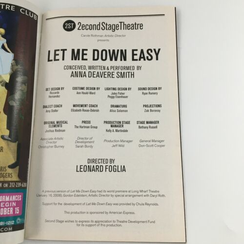 2009 Playbill Second Stage Theatre 'Let Me Down Easy' Anna Deavere Smith