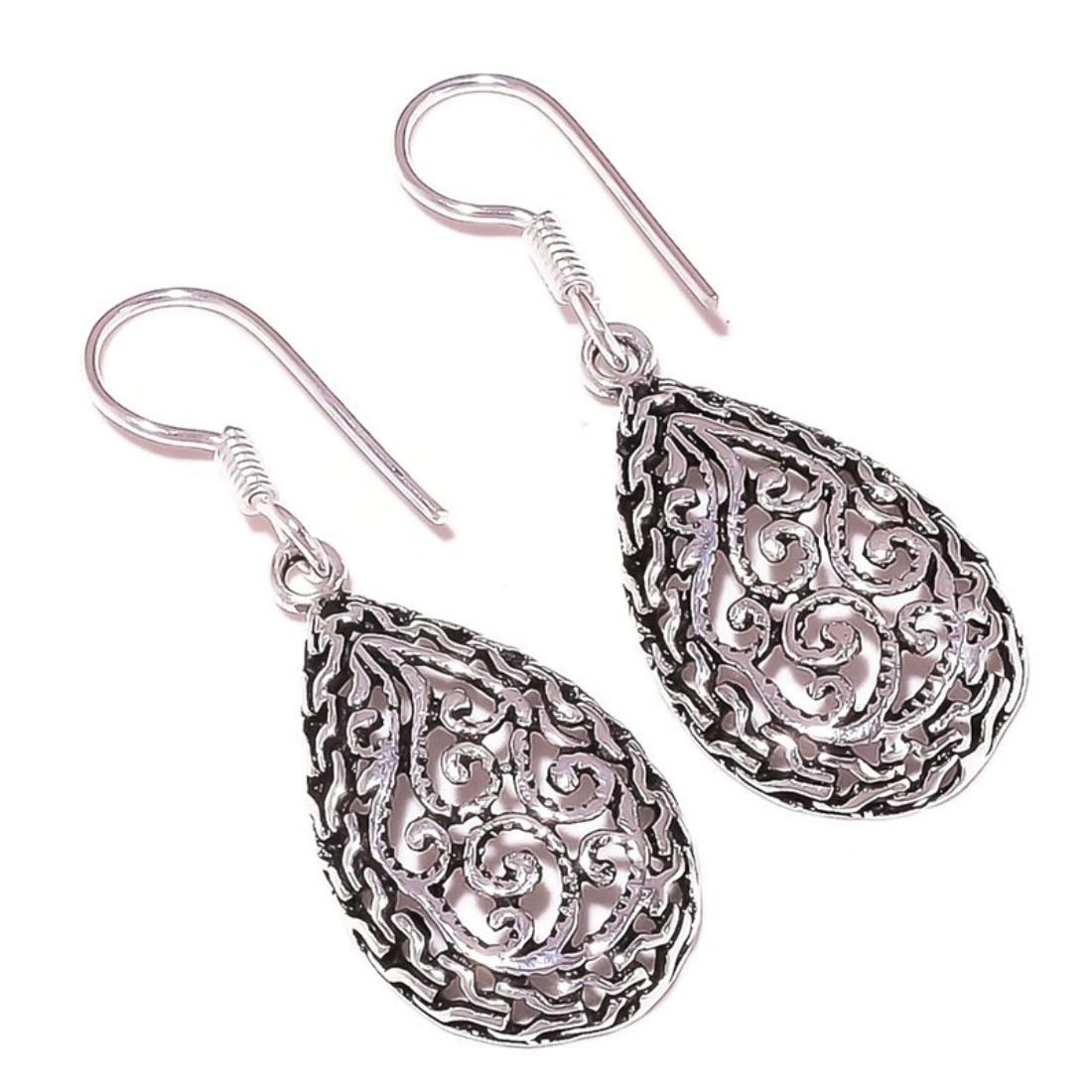 No Stone 925 Silver Overlay Handmade Artisan Design Drop Dangle Filigree Earring