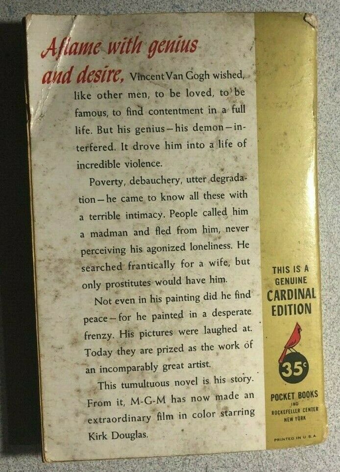 LUST FOR LIFE by Irving Stone (1956) Pocket Books Cardinal Kirk Douglas movie pb