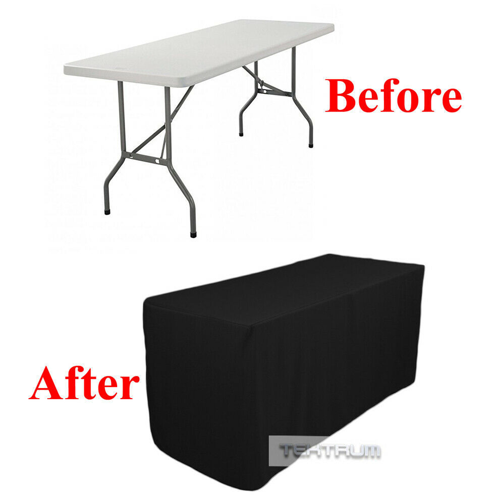 Product Description This fitted table jacket cover is designed to cover all 5 sides of a rectangular table for trade show, party, and banquet etc. It provides a refreshing look to your display and present your business in the most professional way.