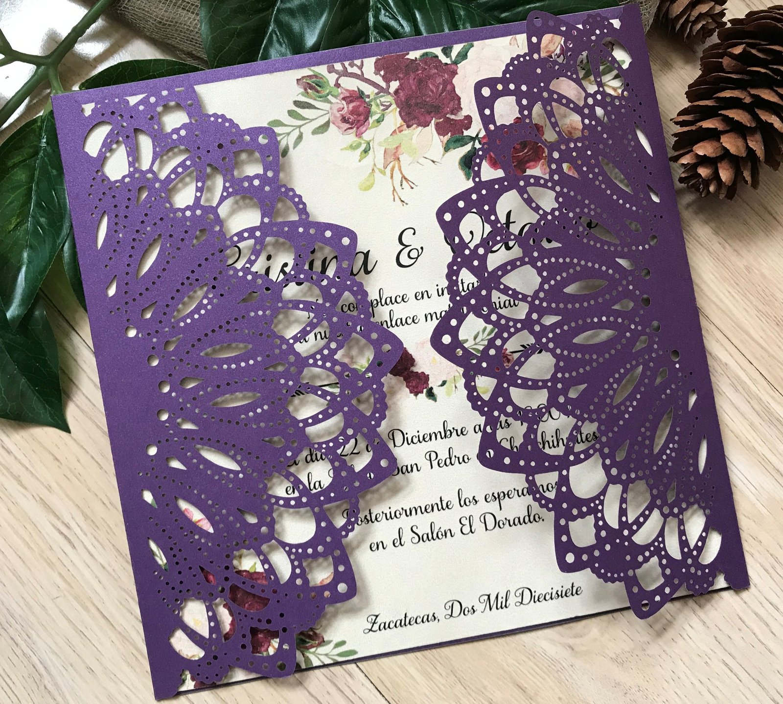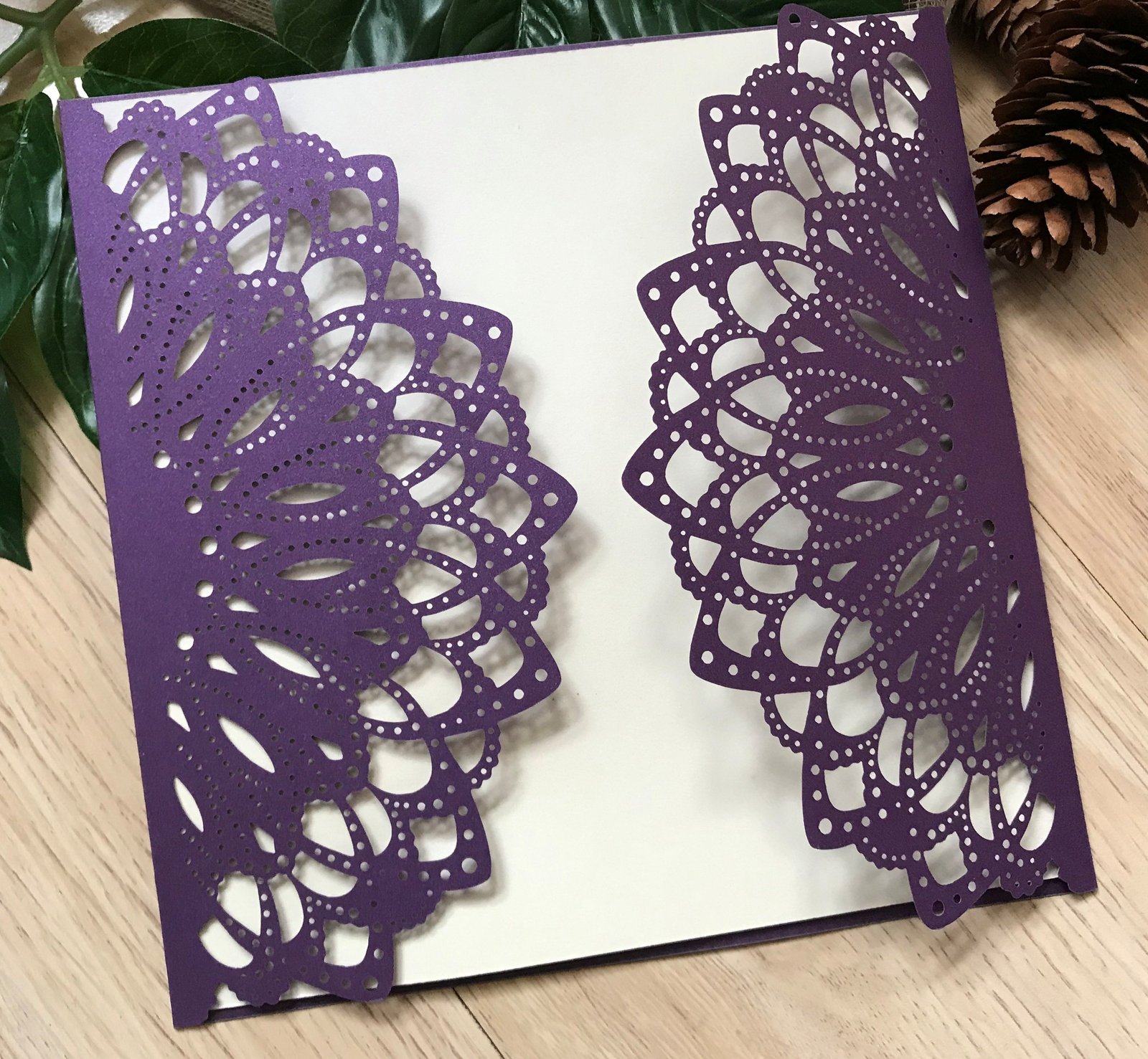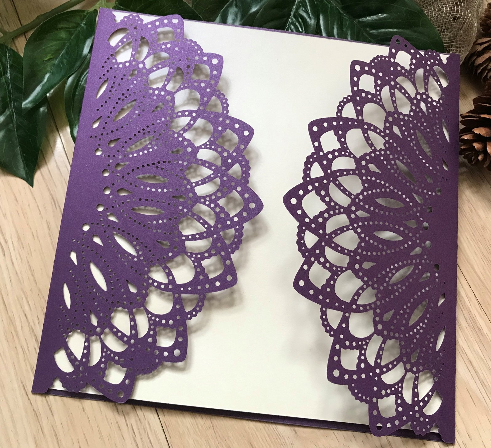 50pcs Pearl purple Laser Cut Invitations and similar items