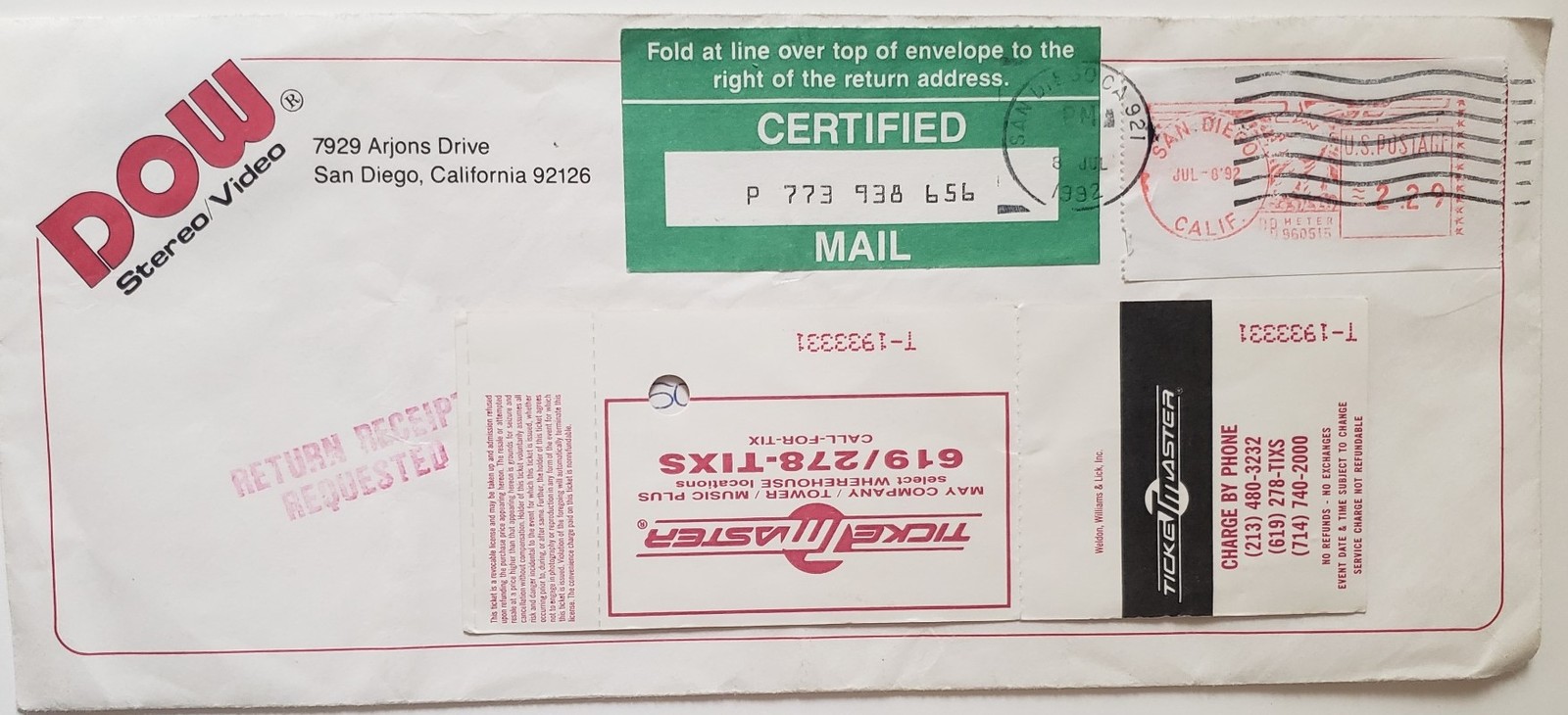 Letter is dated July 7, 1992 sent by DOW Stereo/Video.