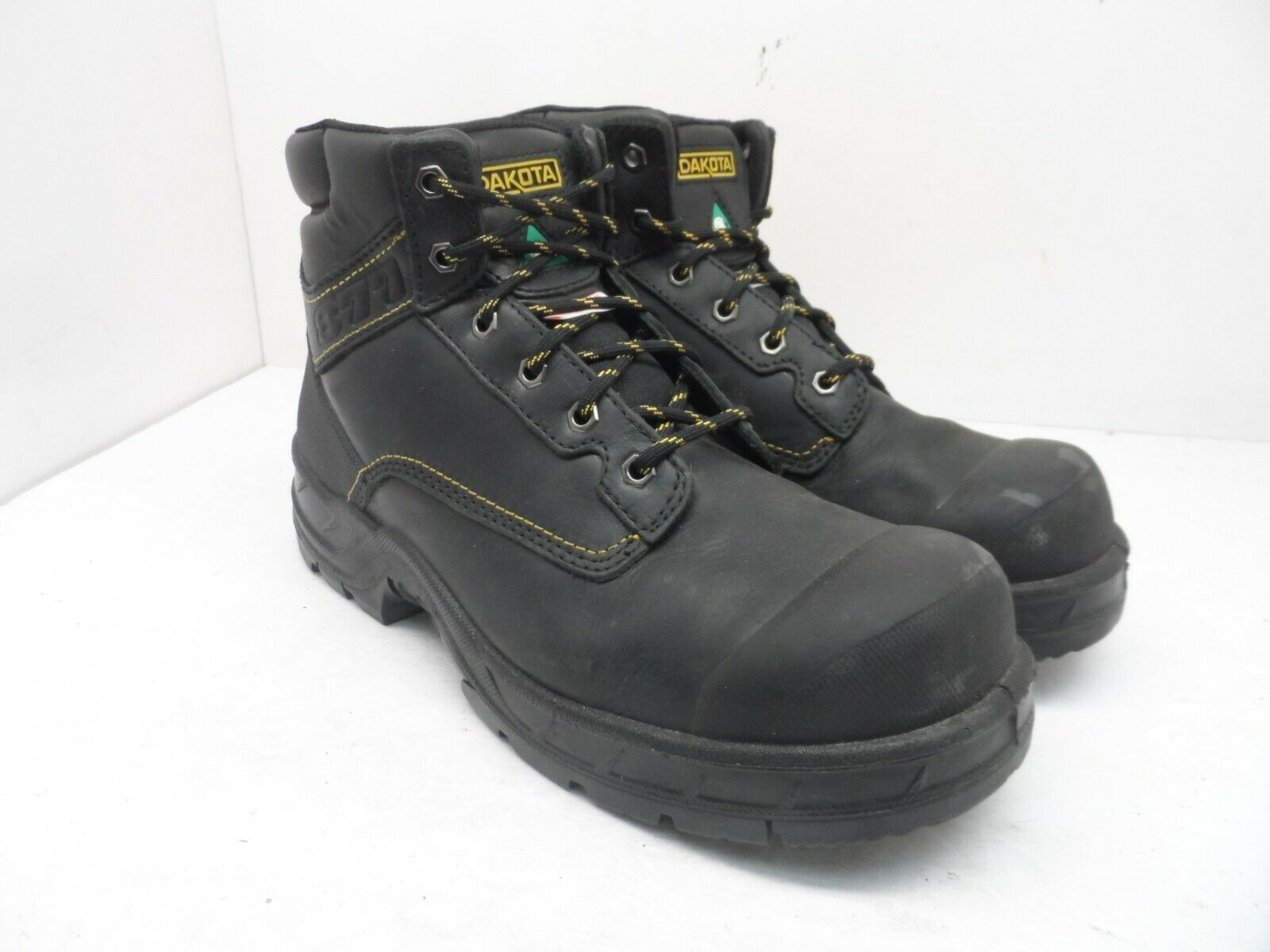 Dakota Men's 6'' 877 Steel Toe Steel Plate Work Boots Black Leather Size 10M