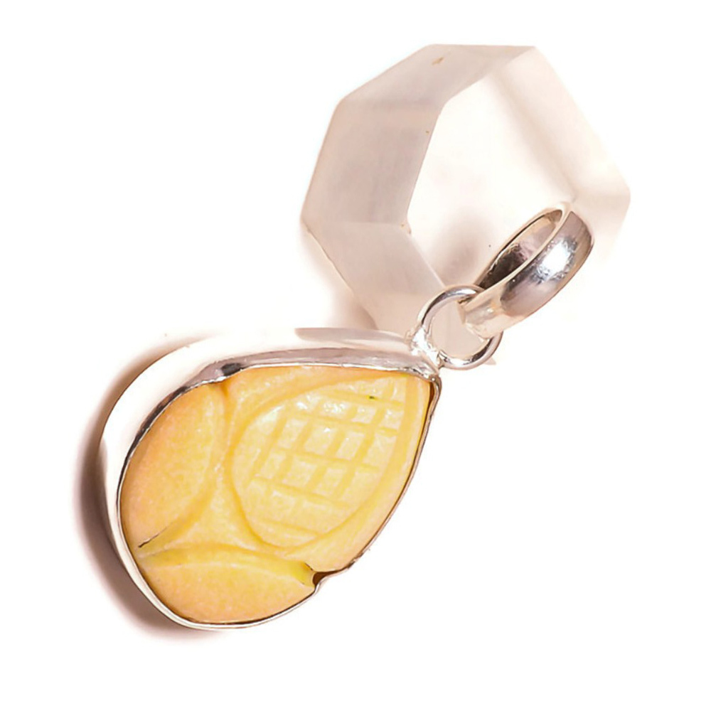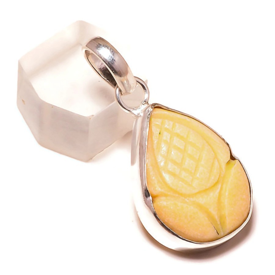 Hand Carved off White Jasper Gemstone 925 Silver Overlay Handmade Flower Pendant