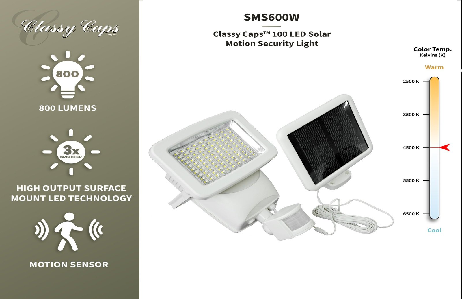 Classy Caps Super Bright 100 LED Solar Motion Security Light SMS600W