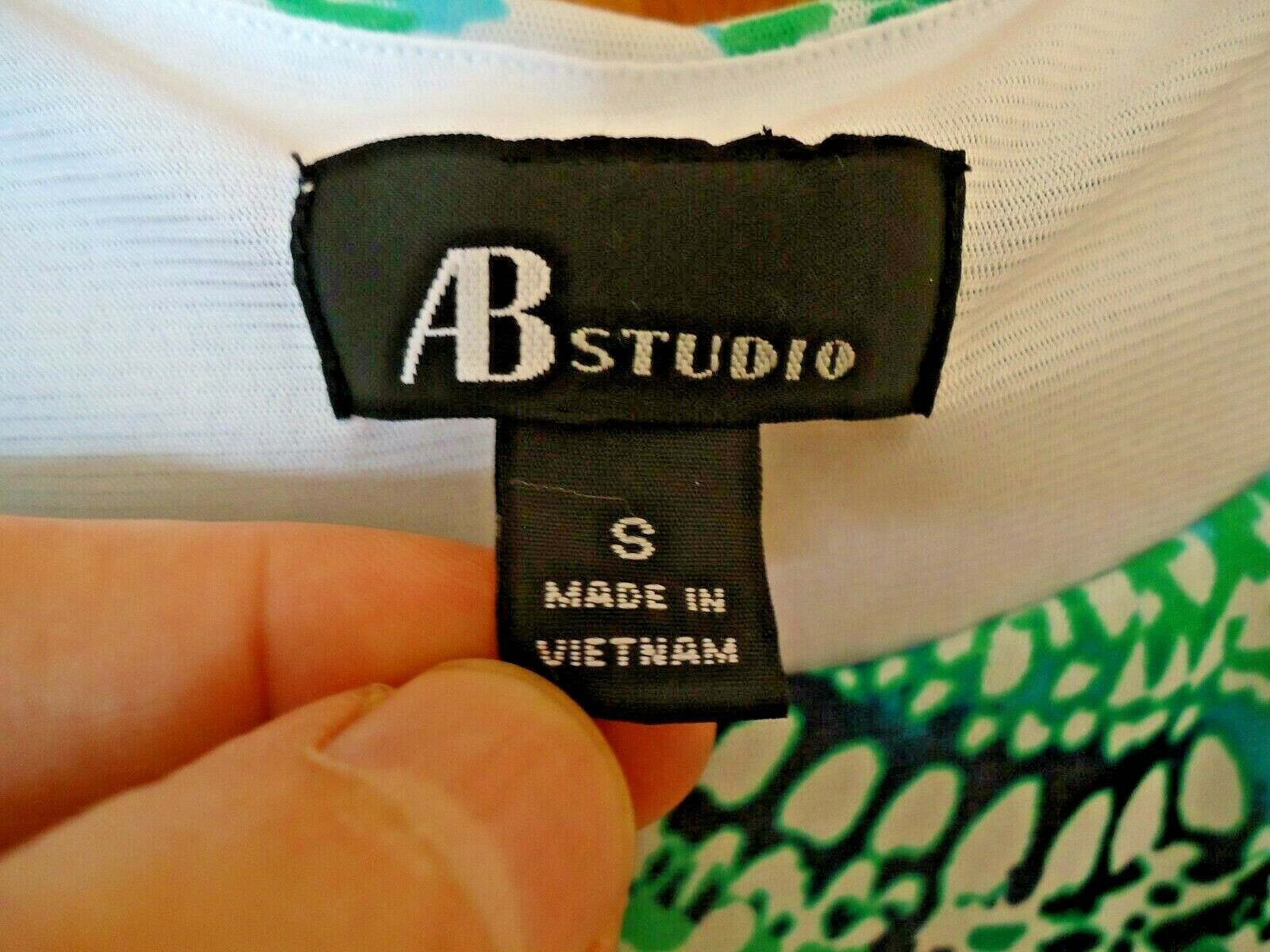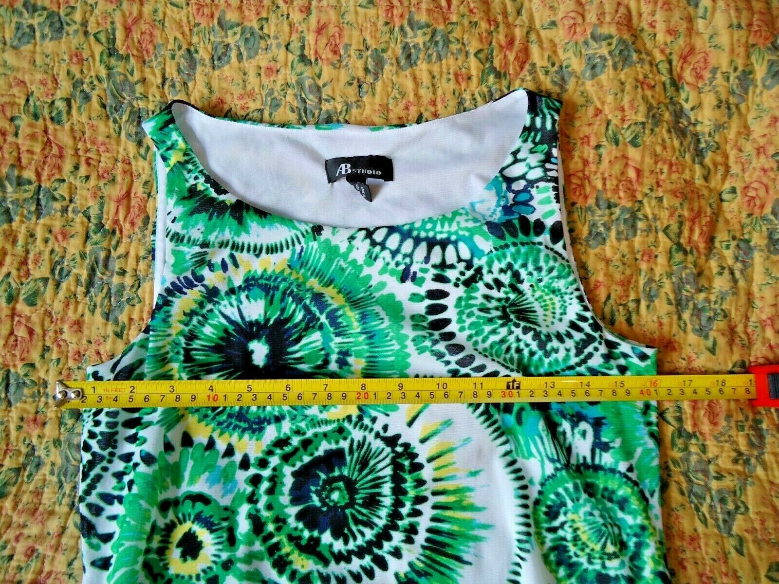 Here is a AB Studio Size S Green Multi Color Sleeveless Top " BEAUTIFUL TOP ".The pics do not do this item(s) justice.If you have any concerns or questions about this item(s) please ask before bidding / purchasing this item(s).Thank You.-(CL20)