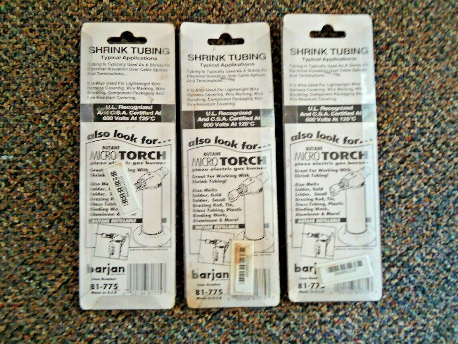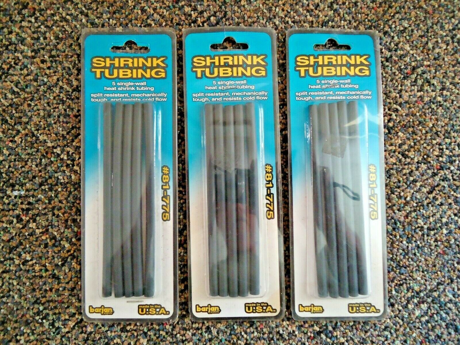 Here is a Lot Of 3 Packs " NIP " Barjan Prod.# 81-775 Heat Shrink Tubing " GREAT ITEM ".This is a must for any Mechanic or Electrician to have in their tool box.If you have any concerns or questions about this item(s) please ask before bidding / purchasing because this item(s) is being SOLD AS IS.Thank You.-(PC85)