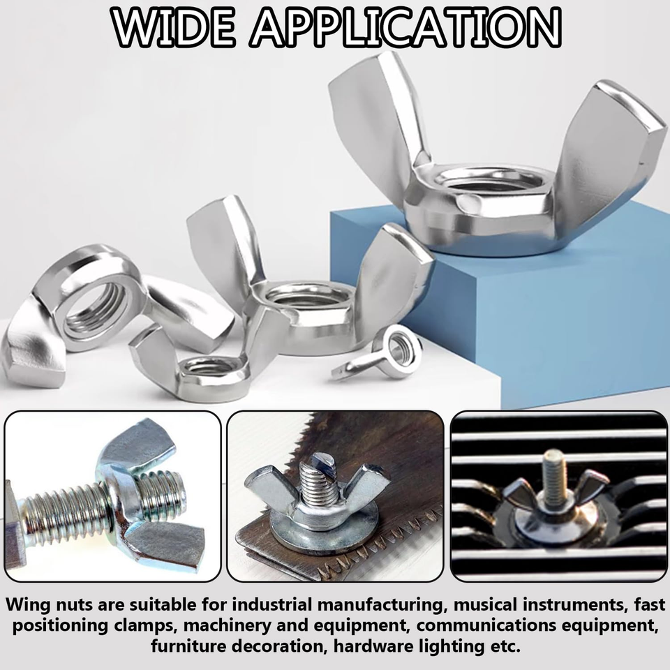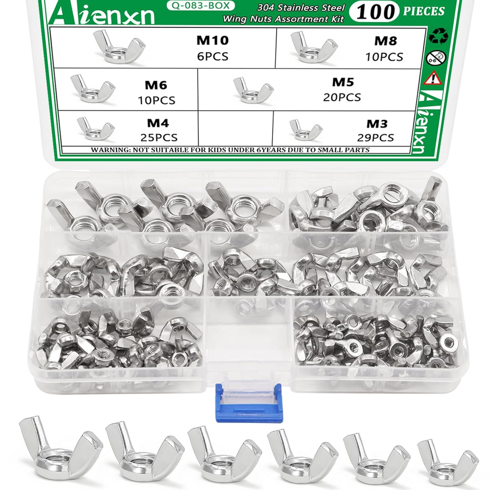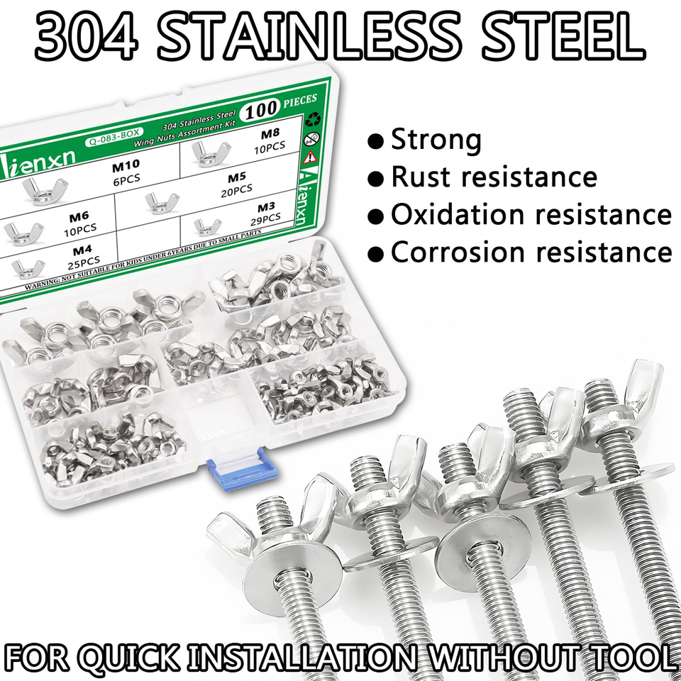 - 100PCS Metric Wing Nuts Assortment Kit, 304 Stainless Steel, M3-M10 Sizes