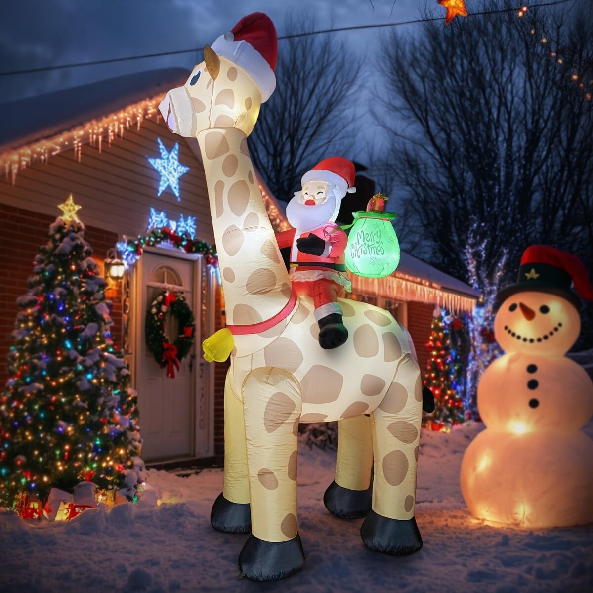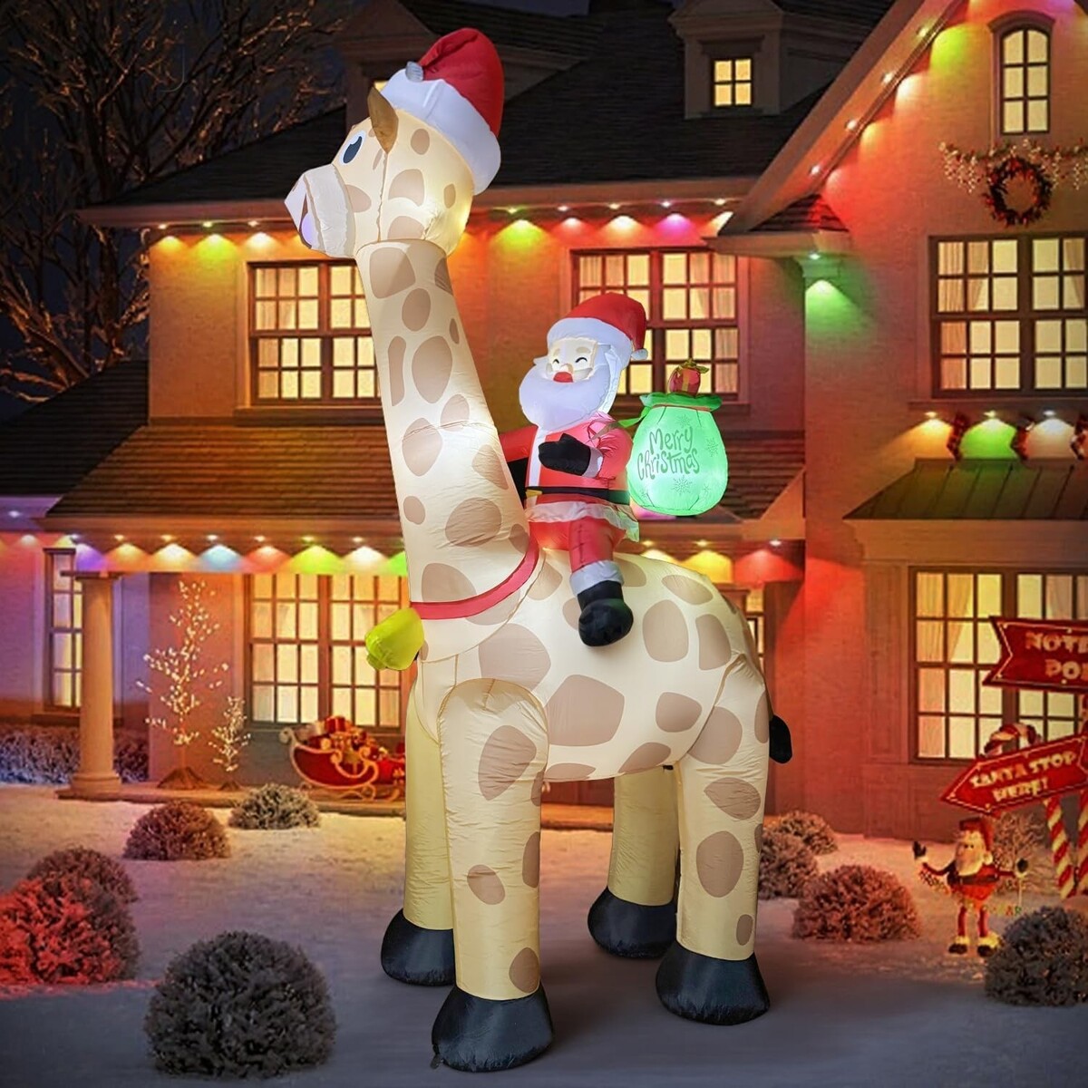 - 10FT Christmas Inflatables Santa Claus Rides Giraffe, Christmas Blow Ups