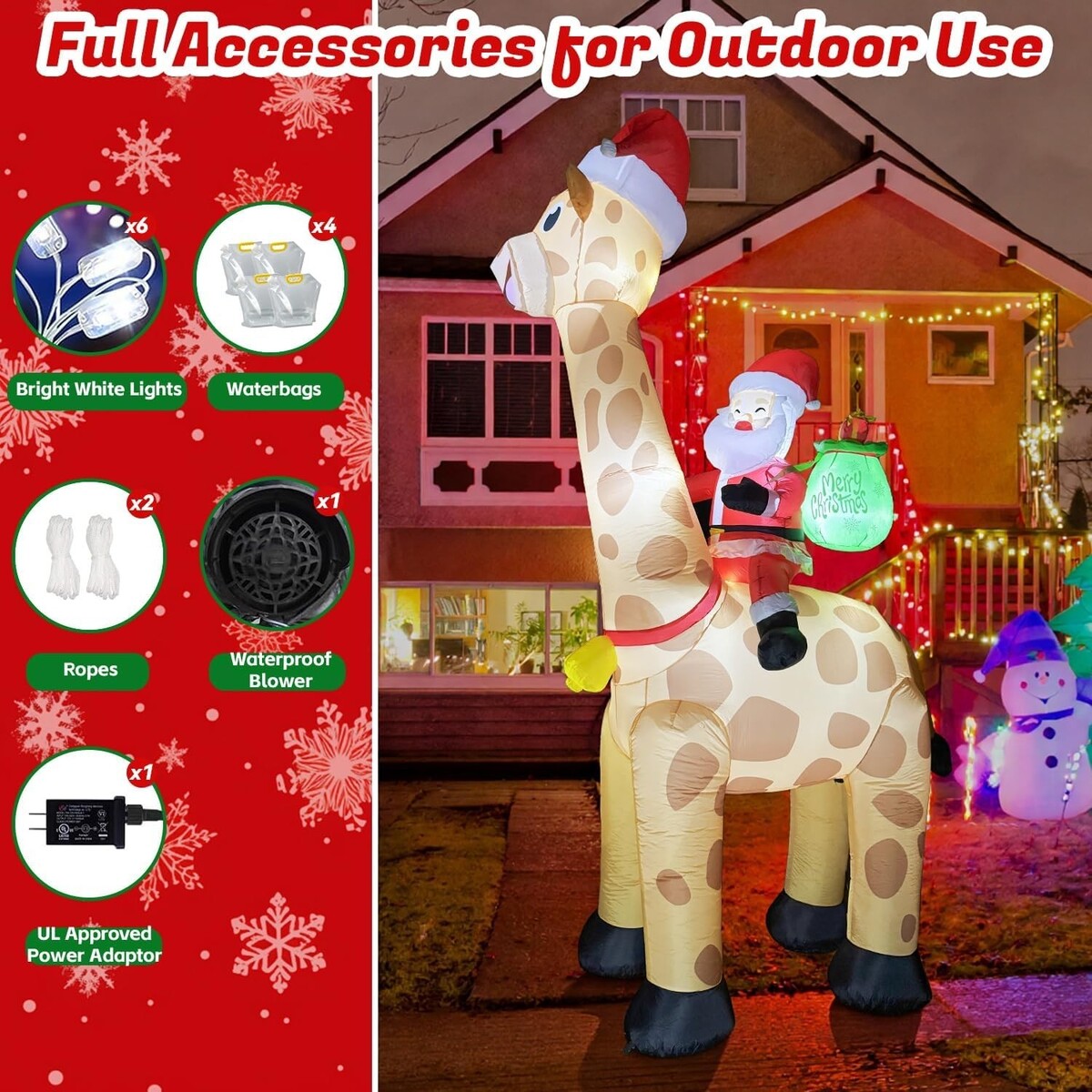 Designed with a high-performance motor, this inflatable remains steady and upright even in windy conditions. It inflates quickly and stays firmly in place, making it a durable and reliable choice for outdoor Christmas decorating.