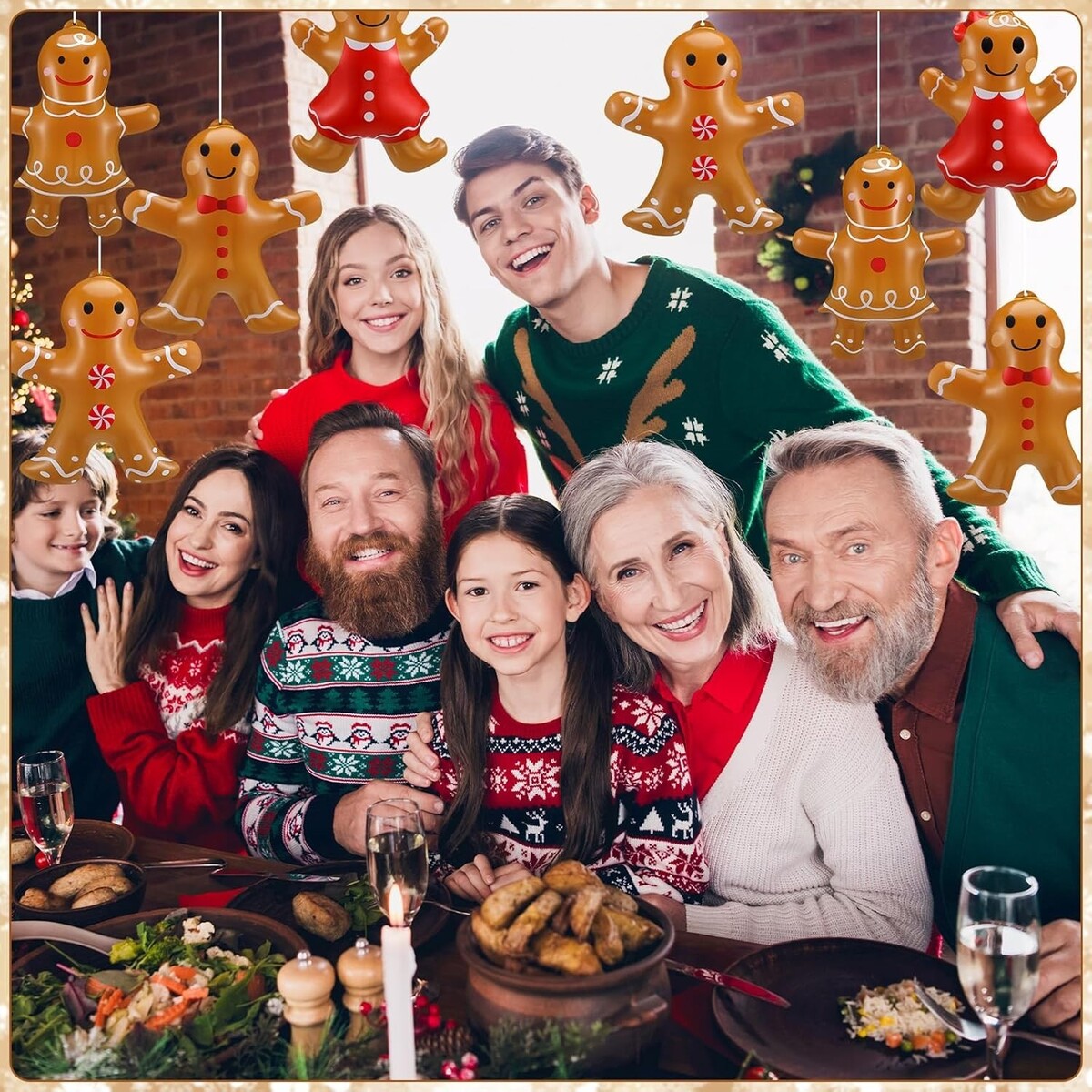 : our Gingerbread Man hanging decor are eye-catching, adding a festive atmosphere to your space; Each gingerbread man measures approximately 8.27 x 8.27 x 1.18 inches/ 21 x 21 x 3 cm and comes with 5.47meters long rope that is suitable for decorating trees, walls, or entrances; The large size and striking color will elevate any space