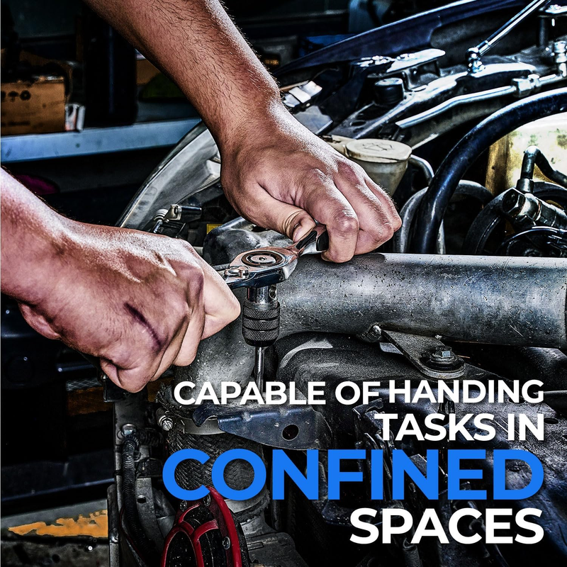 The reversible ratcheting T-handle offers directional control and efficient torque transfer, allowing threading work with less effort than conventional tap wrenches. A 5 swing arc enables use in tight spaces, and the twist-lock guide system helps reduce die ?walk back,? keeping alignment centered during threading.