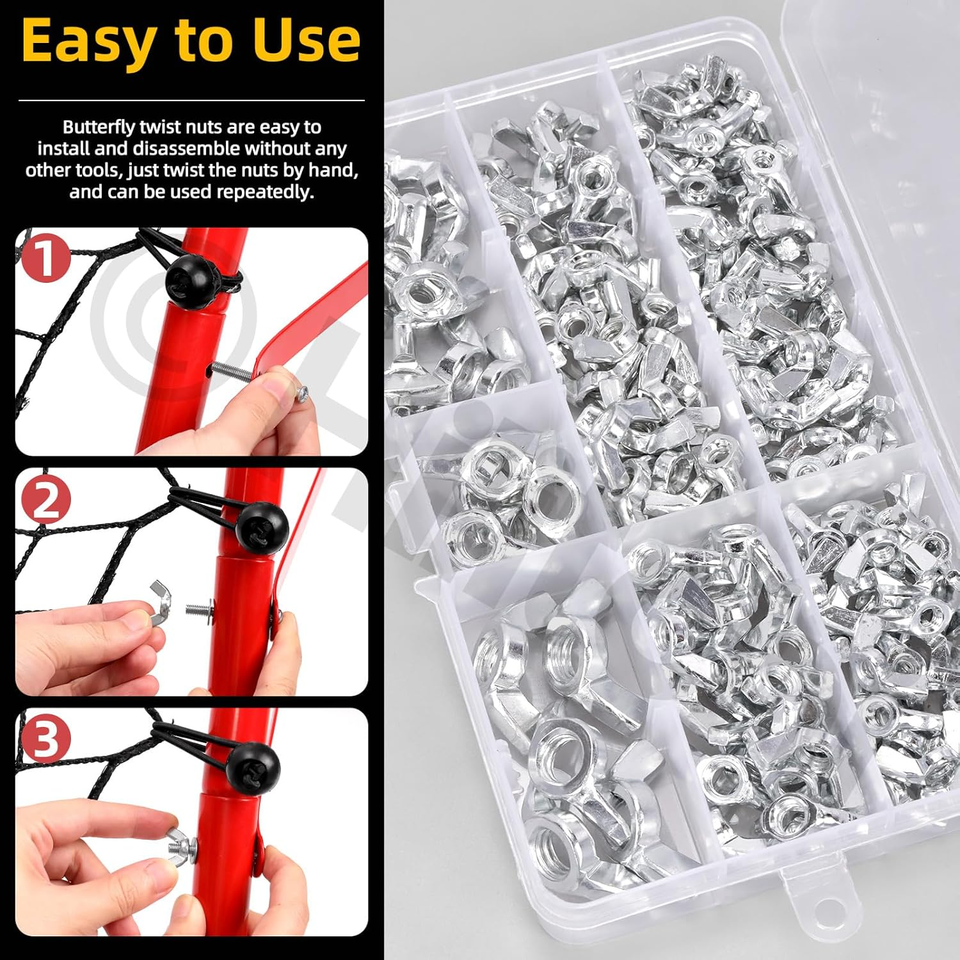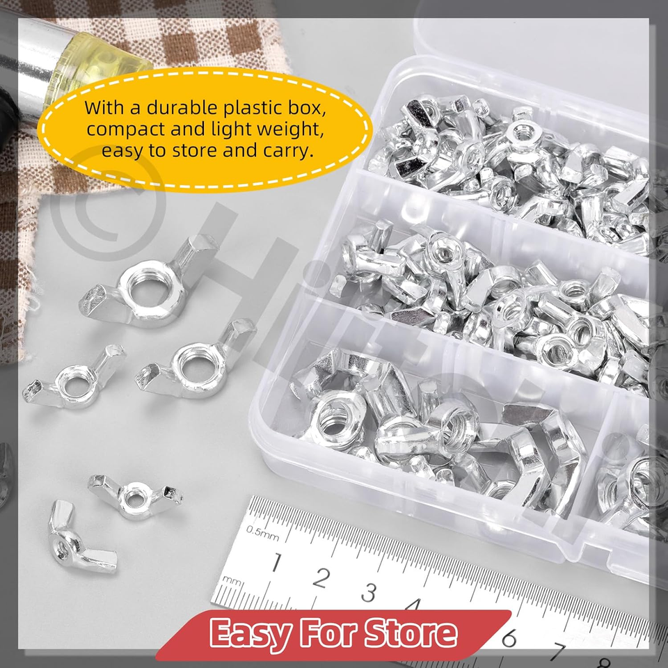 Convenient Storage: The assortment comes in a durable plastic box, keeping the wing nuts organized and easily accessible, preventing loss and simplifying storage.