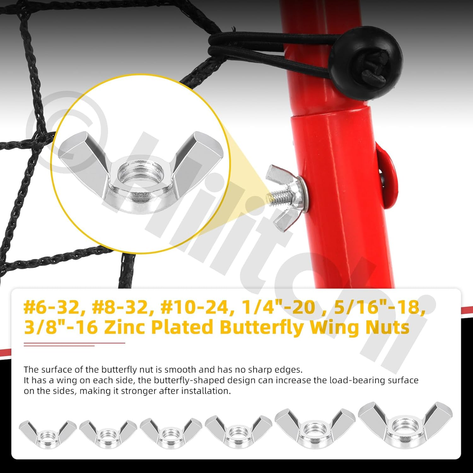 Premium Material: Each wing nut is constructed from high-quality carbon steel with a zinc-plated finish, providing a smooth, burr-free surface. These nuts offer excellent toughness, strong corrosion resistance, and rust prevention, making them suitable for both indoor and outdoor applications.