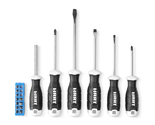 Complete with both standard multi-bit screwdrivers, The HART 17 PC. Screwdriver Set offers a variety of durable screwdrivers for any need. Each of the standard screwdrivers features a magnetic tip that secures the fastener to the end of the driver. Tip identifiers marked on the top of each screwdriver make it easy to identify the size and driver style. The comfort grips make the screwdrivers easy to handle.