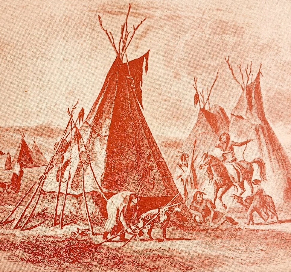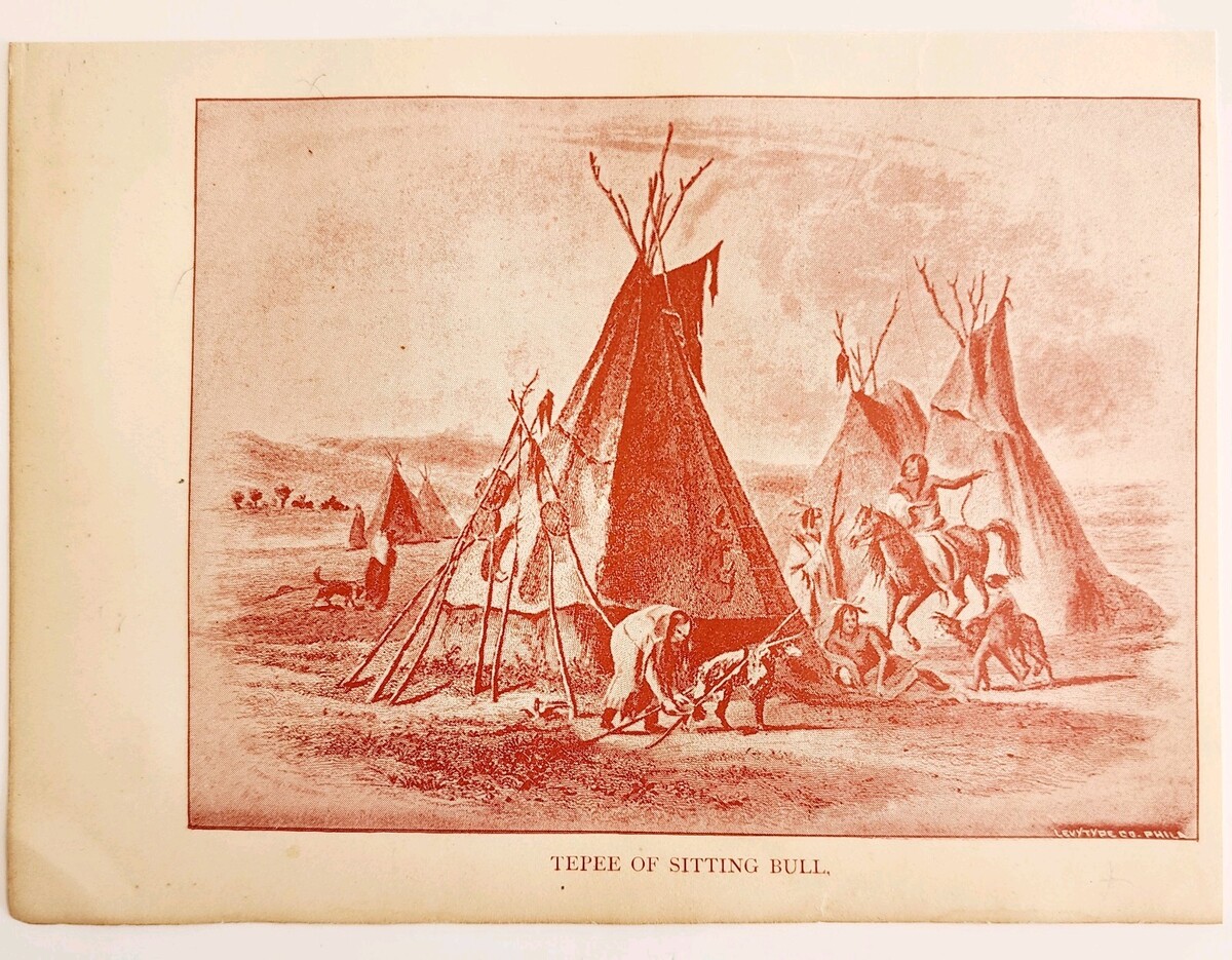 1891 Tepee Of Sitting Bull Red Plate Print Victorian Indian War History F6G