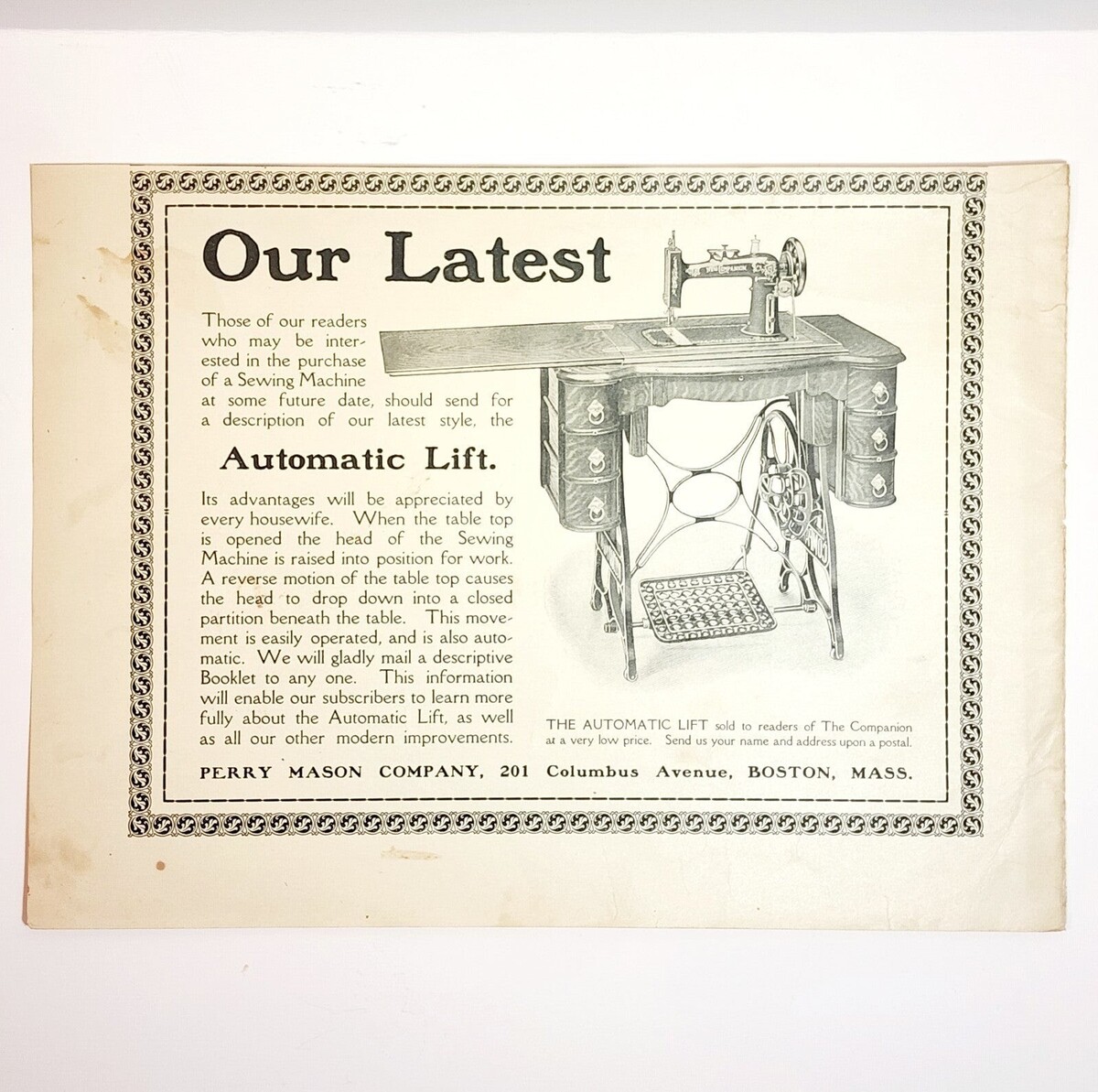 1904 Perry Mason Sewing Machine Automatic Advertisement Ephemera 11.25 x 8.25"