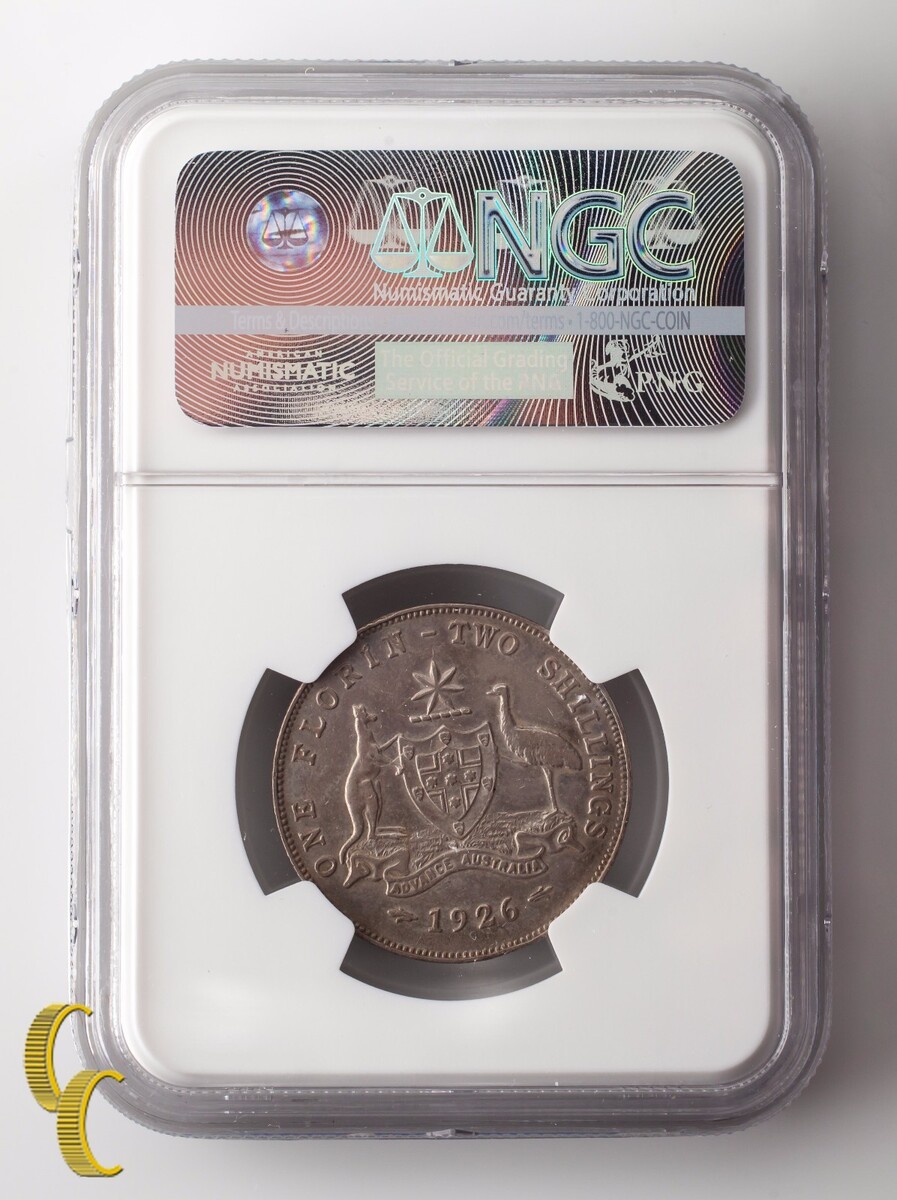 - 1926 Australia Florin, 2 Shillings Graded AU DETAILS By NGC, KM# 27